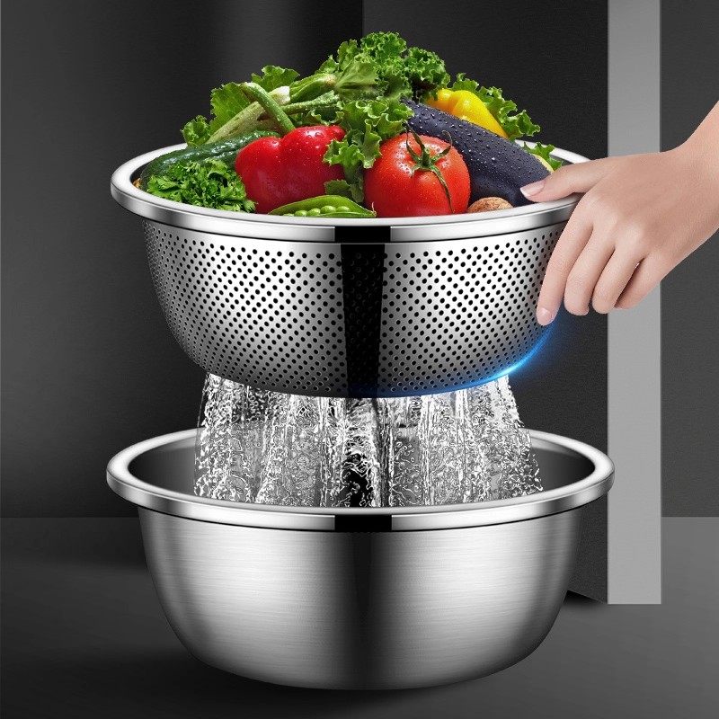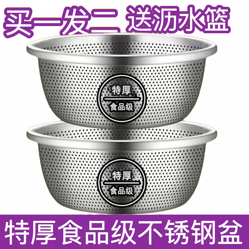 加厚不锈钢洗菜盆洗菜篮圆形大孔盆厨房家用沥水盆水果盆控水漏盆
