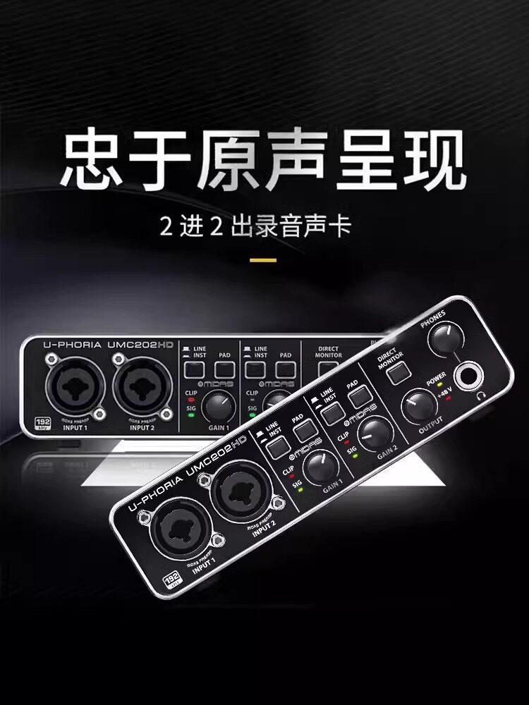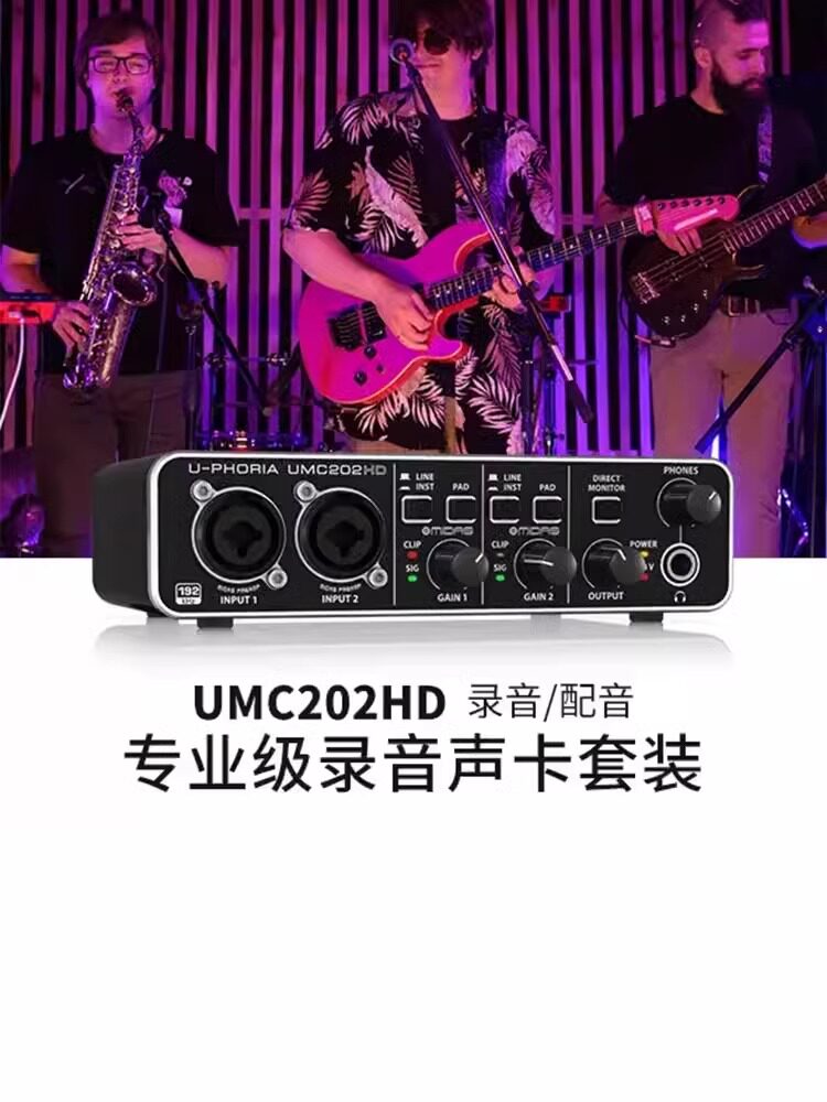 BEHRINGER/百灵达UMC202HD直播k歌录音编曲ASRM助眠USB外置声卡