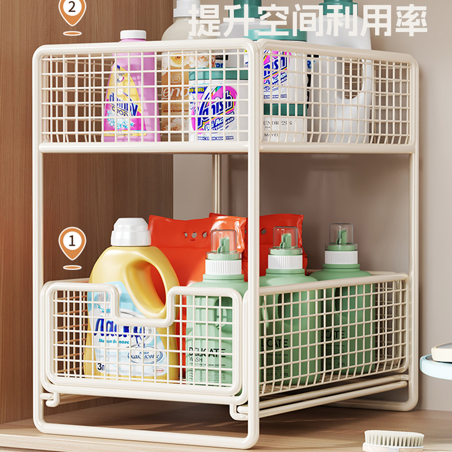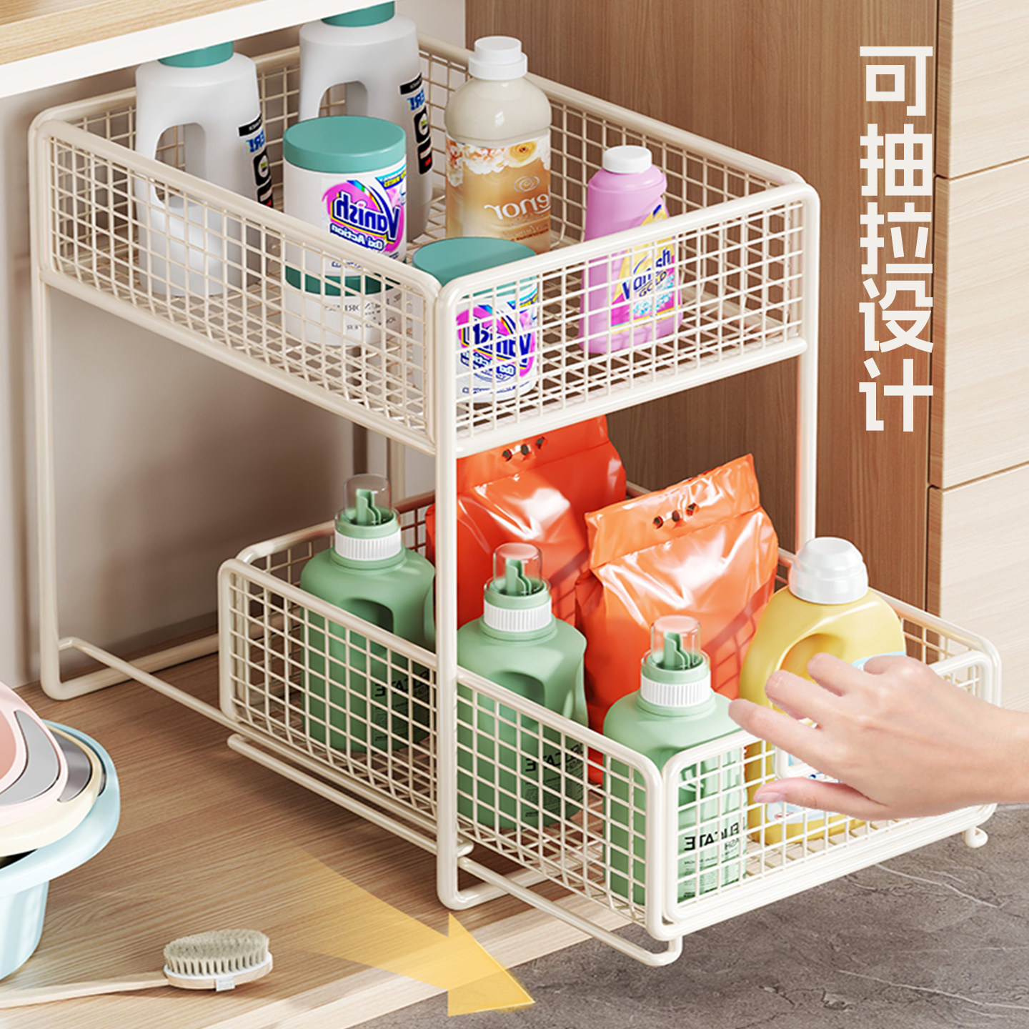 浴室柜下可抽拉置物架卫生间下水槽收纳筐洗漱台橱柜内分层架承重