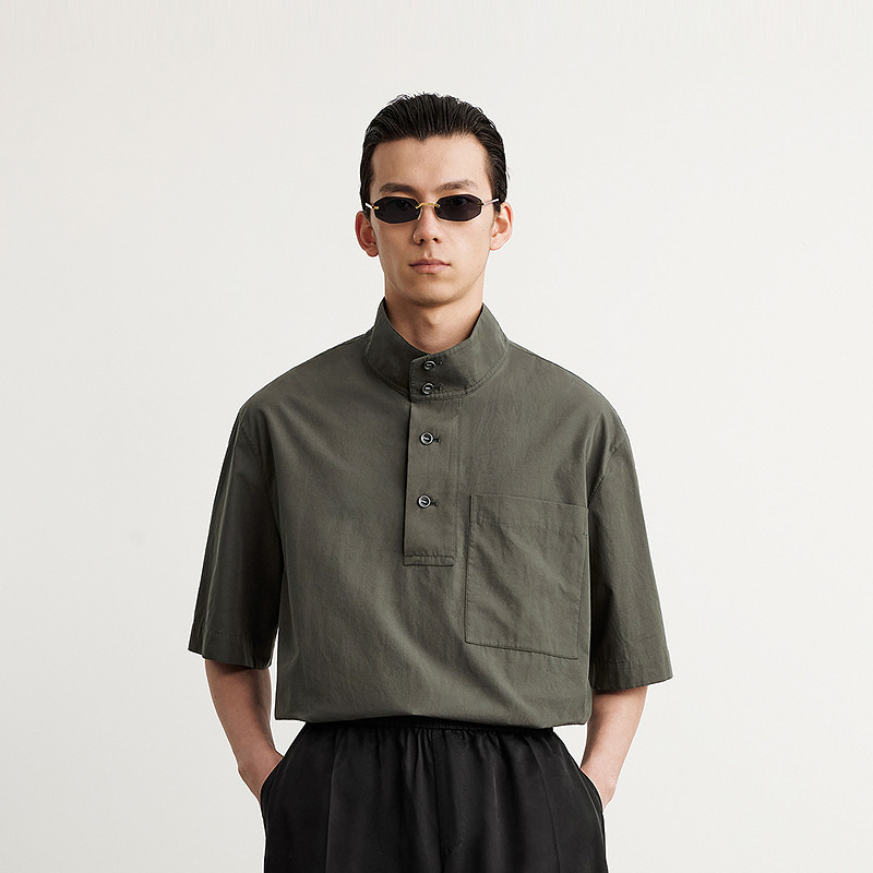 [含汉麻]速写男装春夏新款男士衬衫简约棉麻短袖衬衫优雅通勤