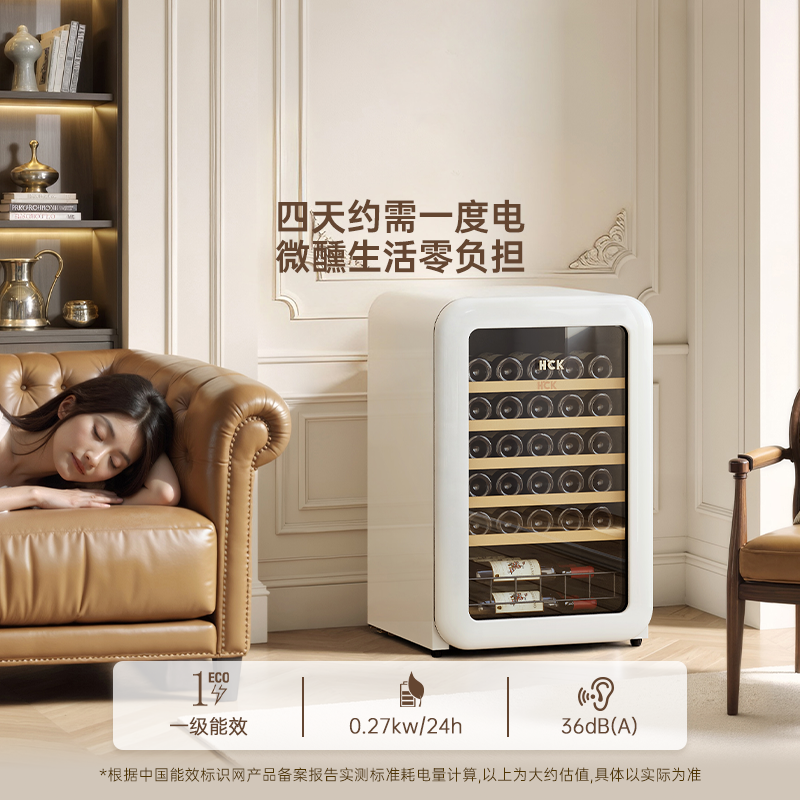 HCK哈士奇复古红酒柜恒温恒湿家用小型茶叶超薄嵌入式冰吧冰箱2.0