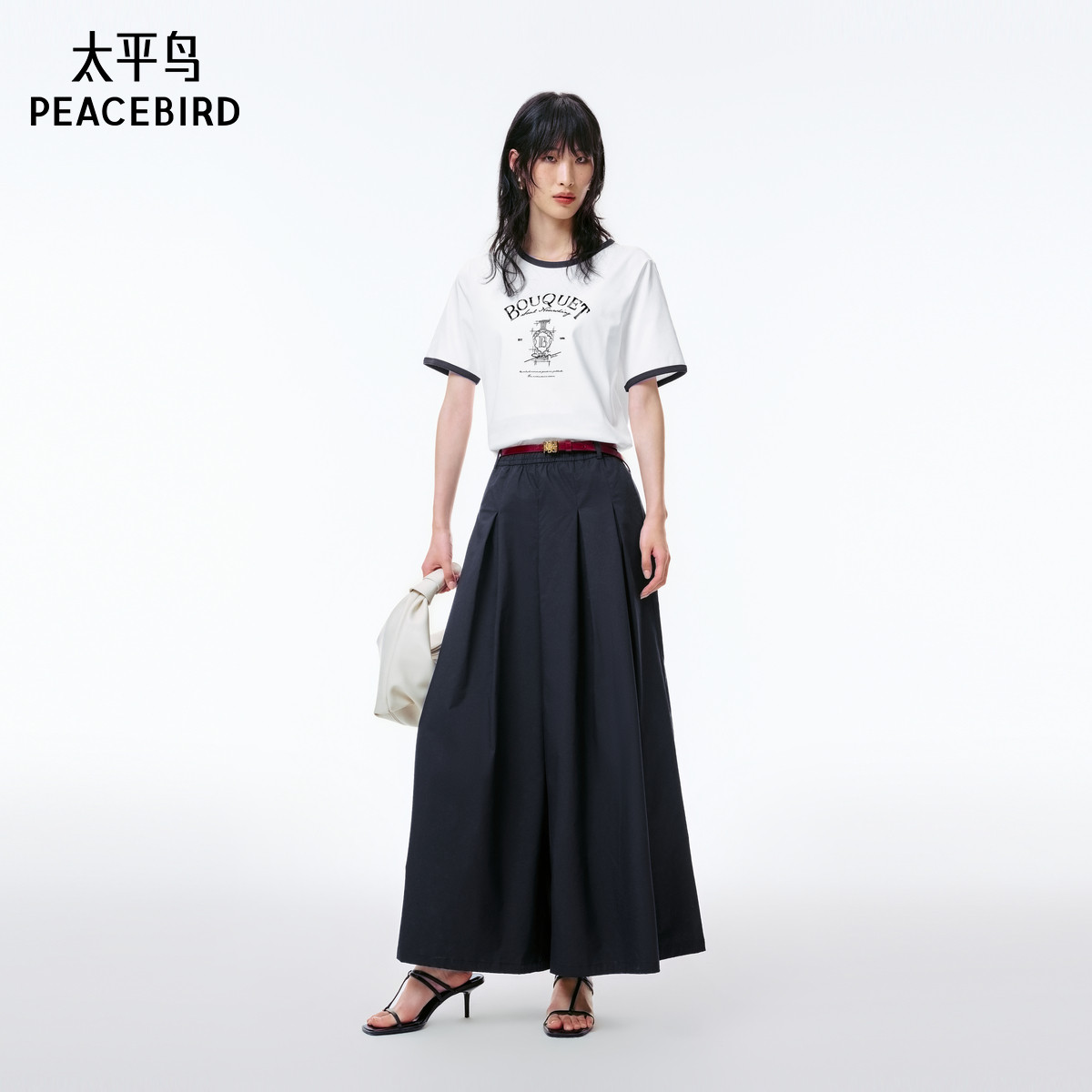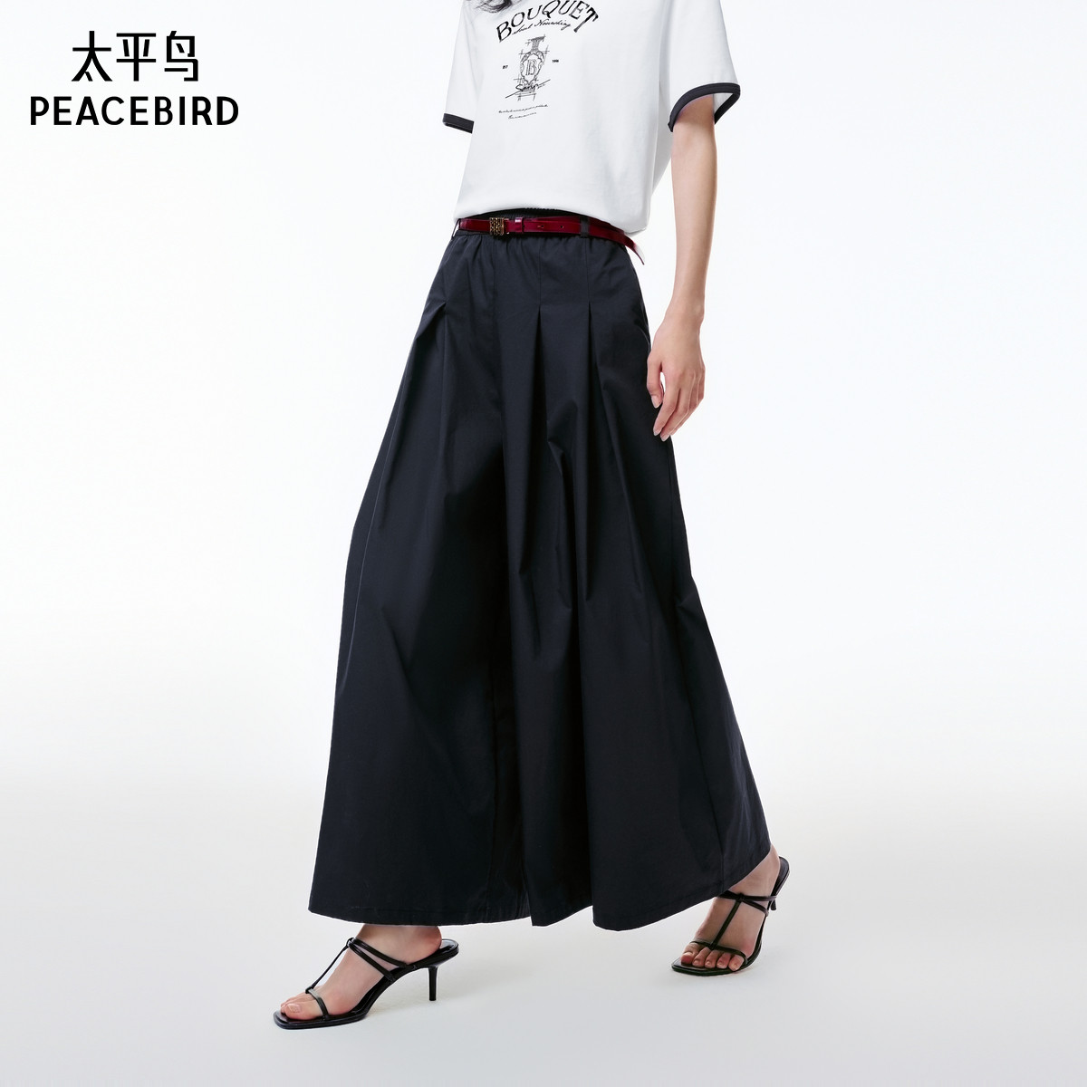 太平鸟高腰大阔腿休闲裤2026年夏季深蓝廓形宽松长裤通勤休闲裤女