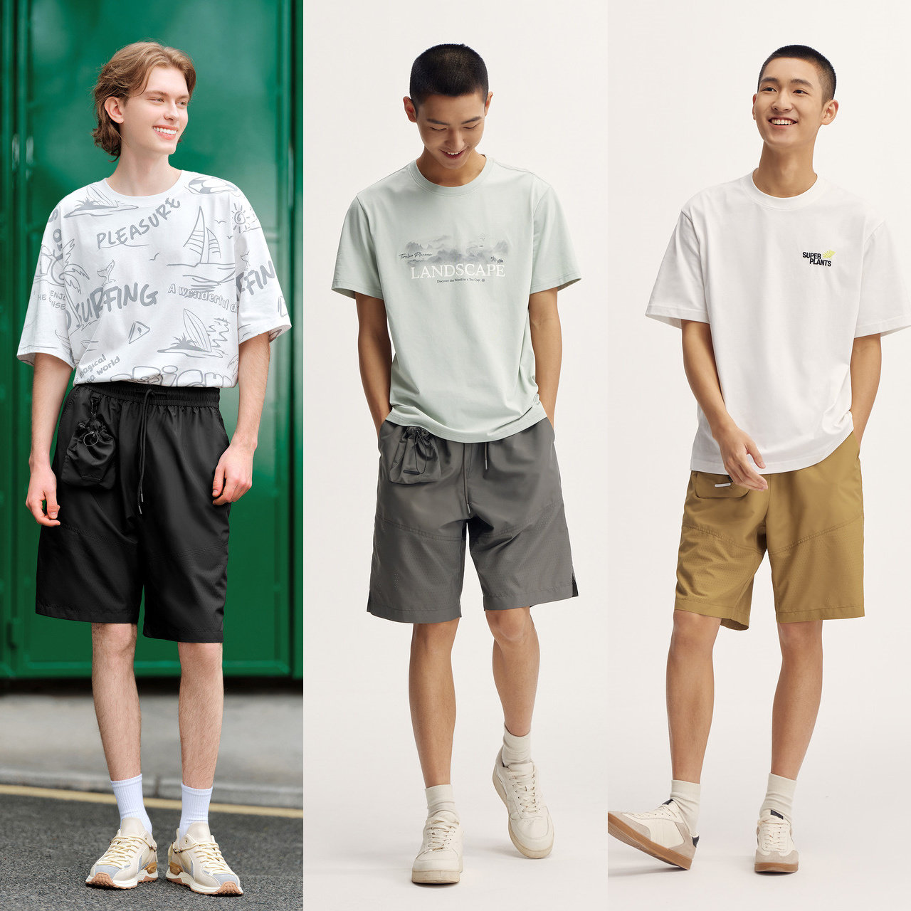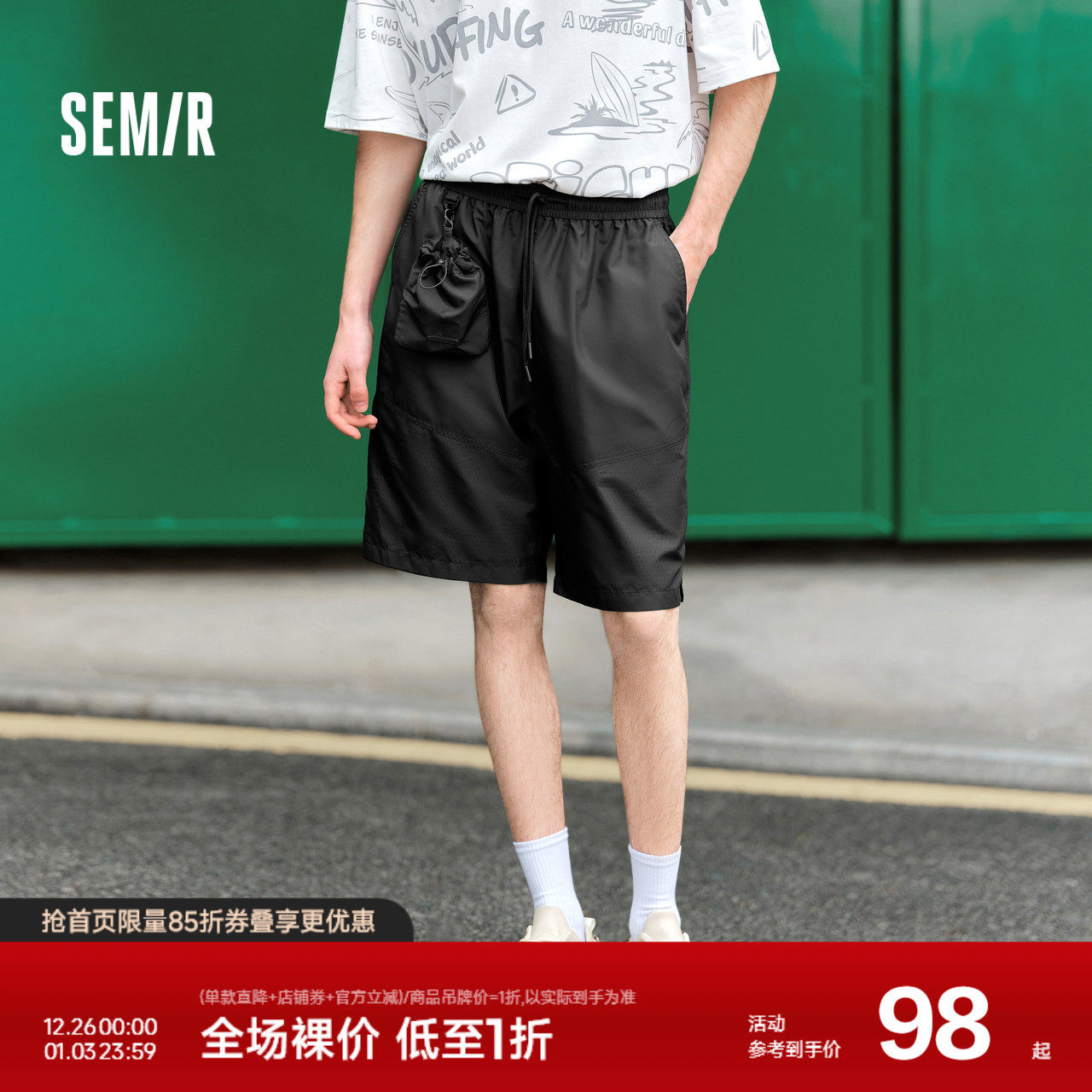 森马休闲中裤男2024夏季新款拼接可收纳户外风直筒裤简约潮酷短裤