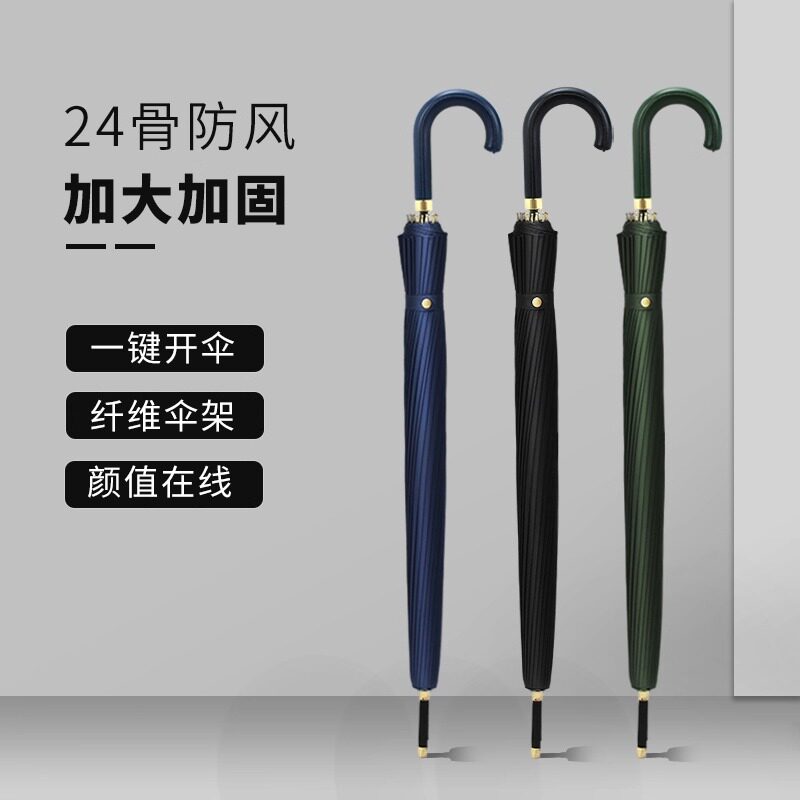 24骨防水套雨伞男大号长柄伞自动女抗加大抗风伞加固黑色直柄双人