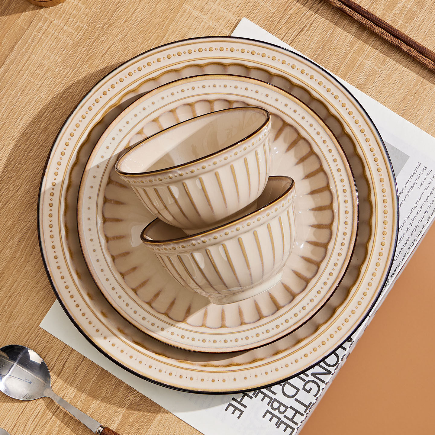 复古餐具套装家用2026新款碗盘套装家用乔迁搬家饭碗漂亮的碗碟具