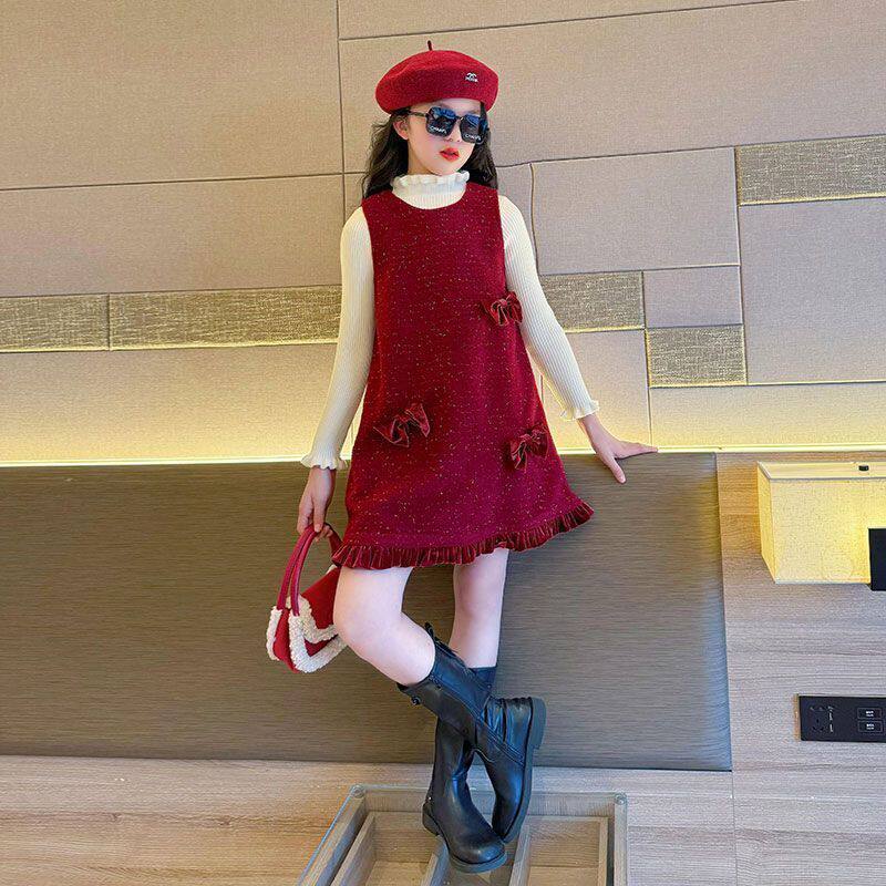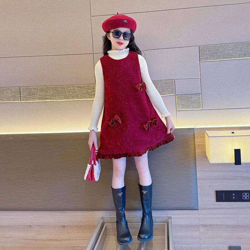 [保暖加厚]连衣裙女童红色小香风背心裙子大童深秋宝宝秋冬衣服
