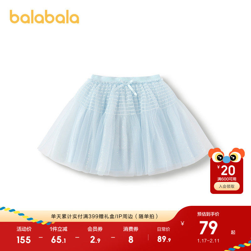 巴拉巴拉童装女童短裙网纱蓬蓬裙春季裙子甜美蝴蝶结可爱公主洋气