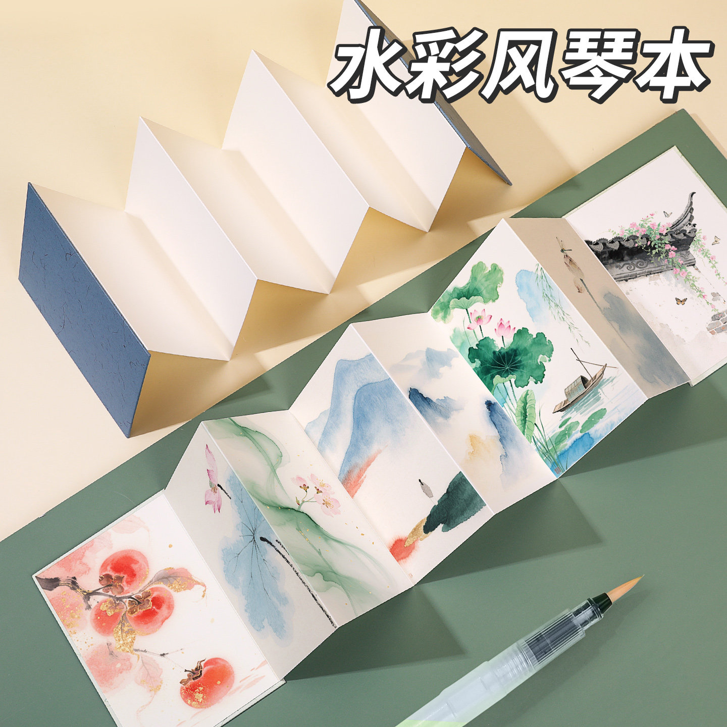 风琴折页本水彩本画本全棉手帐本棉浆细纹水彩纸空白明信片300g旅行盖章绘画便携32K美术生专用连环画空白本