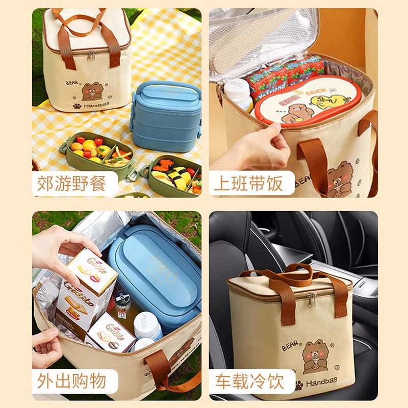 正方形带饭盒袋圆形便当包手提袋子收纳包大号小熊保温袋加厚铝箔