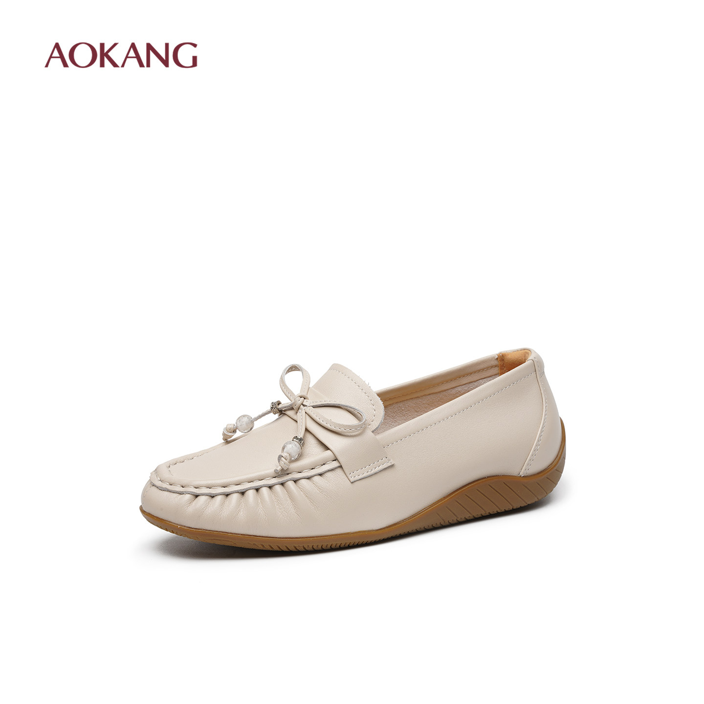 奥康 女鞋2026春季新款软底妈妈鞋真皮平底一脚蹬乐福鞋护士鞋L