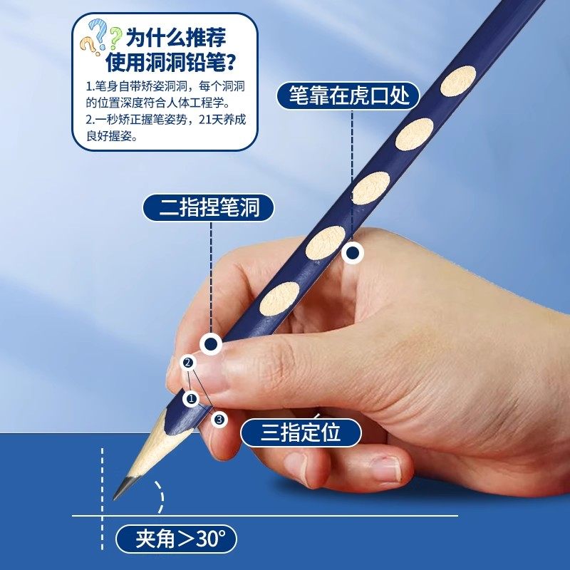 洞洞铅笔小学生专用一年级幼儿园初学者无毒2b铅笔矫正握姿儿童三角HB美术生素描考试写字练字答题卡文具用品