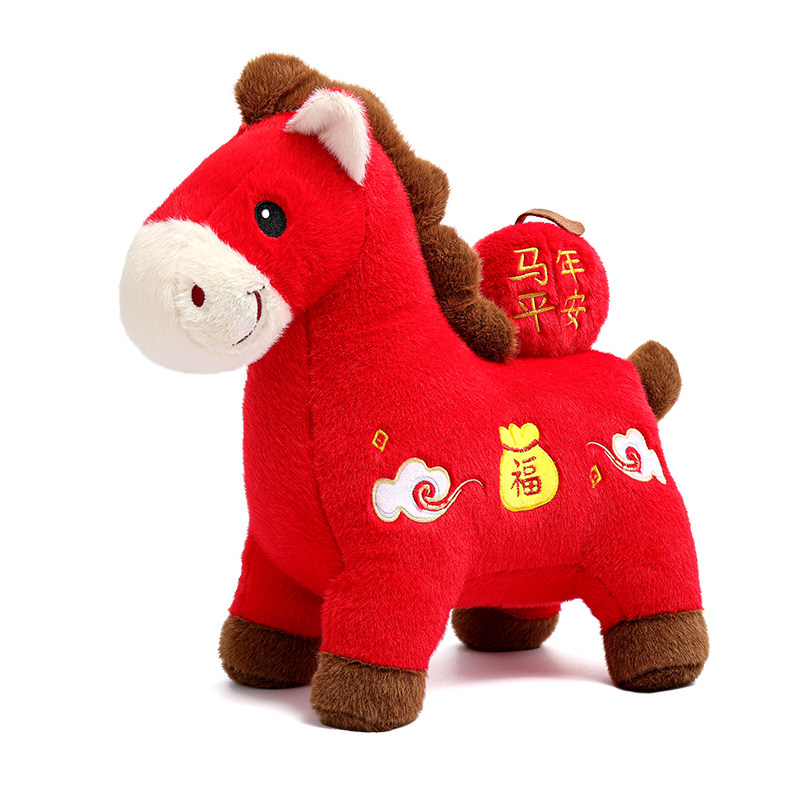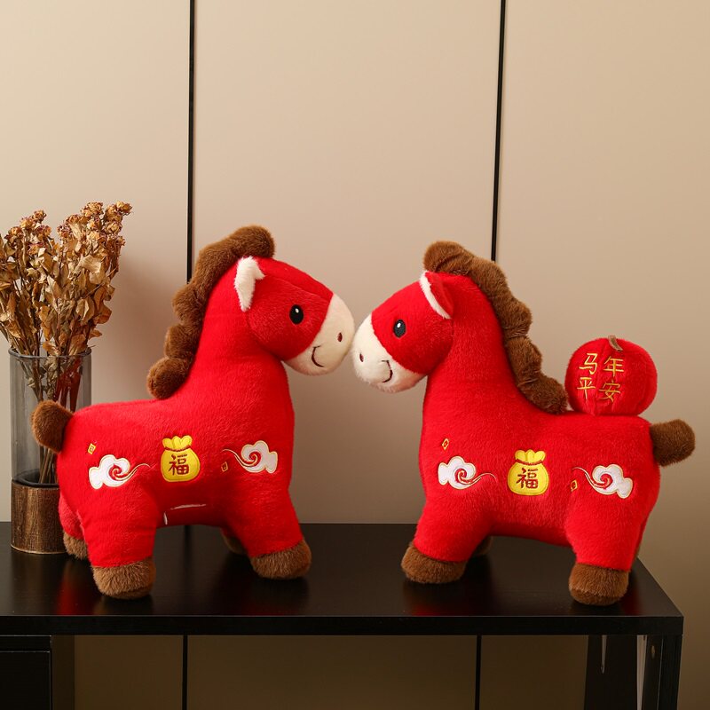 马年吉祥物公仔毛绒玩具红色生肖马玩偶摆件新年活动礼物定制Logo