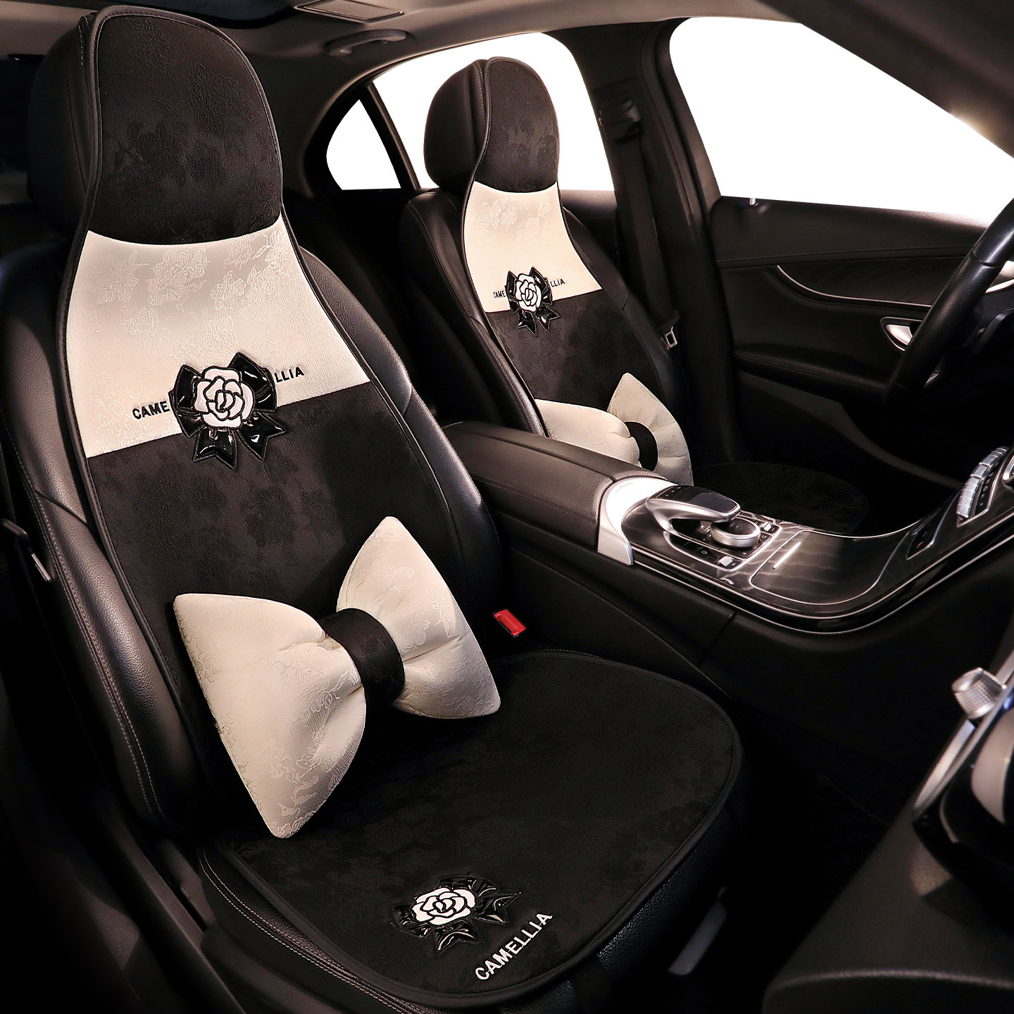 夏雷顿四季通用五座垫山茶花女士简约夏季透气汽车坐垫玫瑰花车垫
