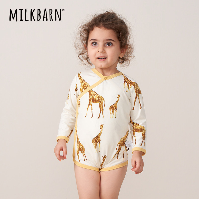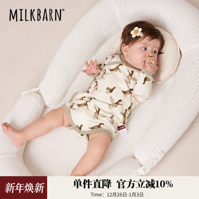 Milkbarn春秋婴儿衣服长袖包屁衣连体衣新生儿宝宝三角哈衣爬爬服