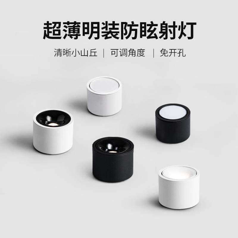 超薄明装射灯防眩角度可调led灯免开孔小山丘家用圆形筒灯无主灯