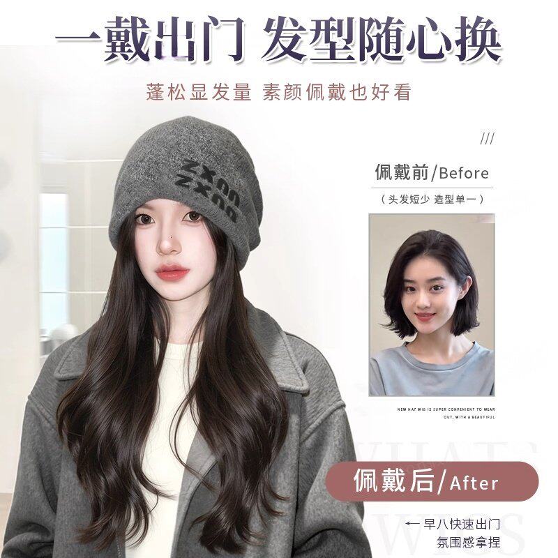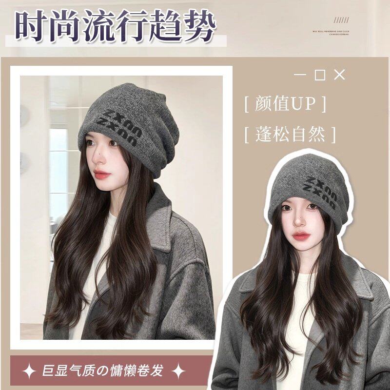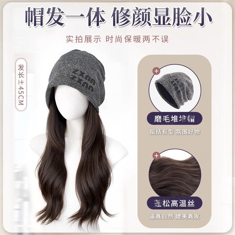 帽子假发一体式女仿真发秋冬新款堆堆冷帽韩系氛围感长卷发全头套