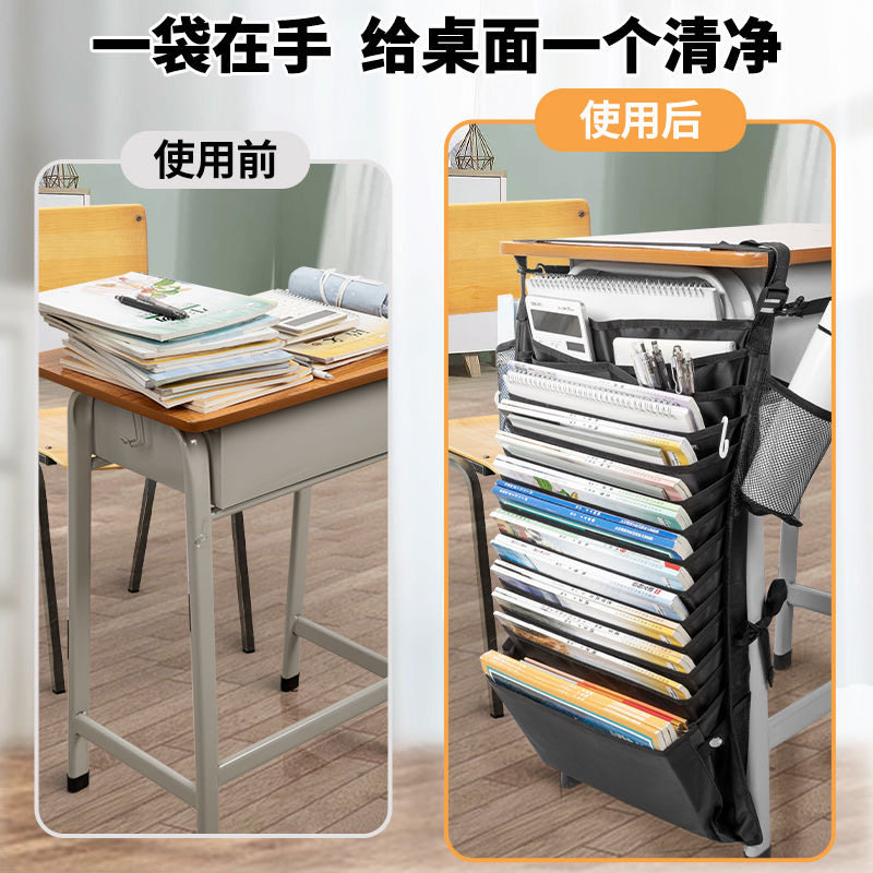 高一新生挂书袋得力书袋课桌收纳中学生书桌挂袋侧旁置物架高初中生教室装放书多功能大容量加厚桌边开学文具