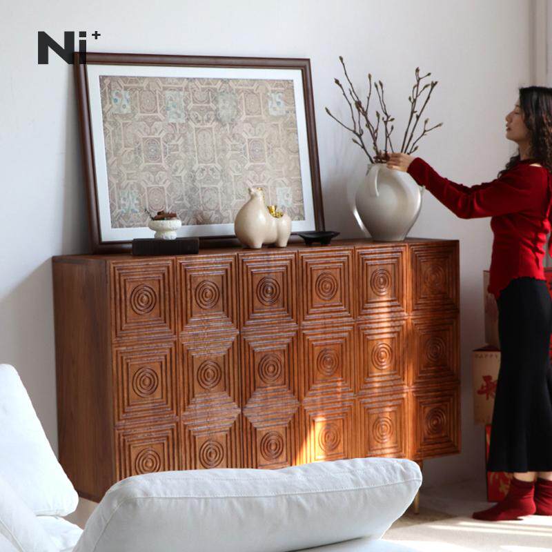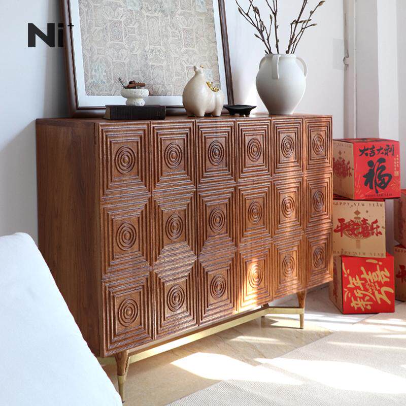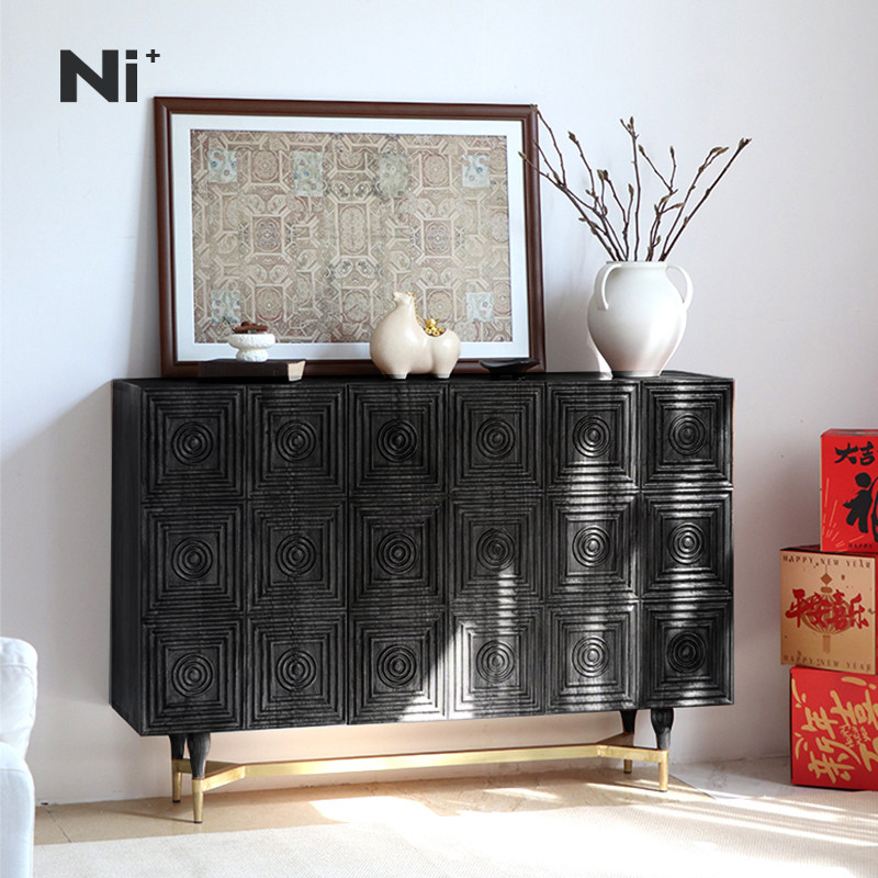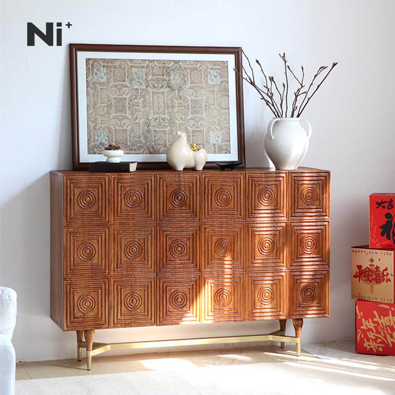 Ni尼家中古风餐边柜法式复古侘寂民宿客厅储物玄关收纳柜实木鞋柜