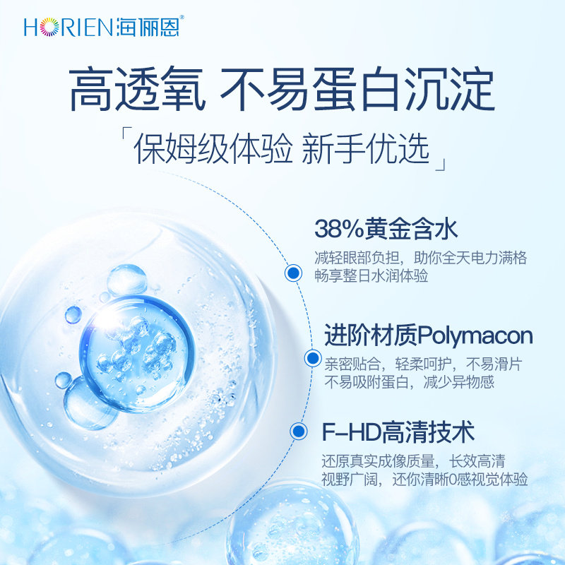 【淘宝秒杀】海俪恩隐形近视眼镜润氧半年抛2片透明高清水润
