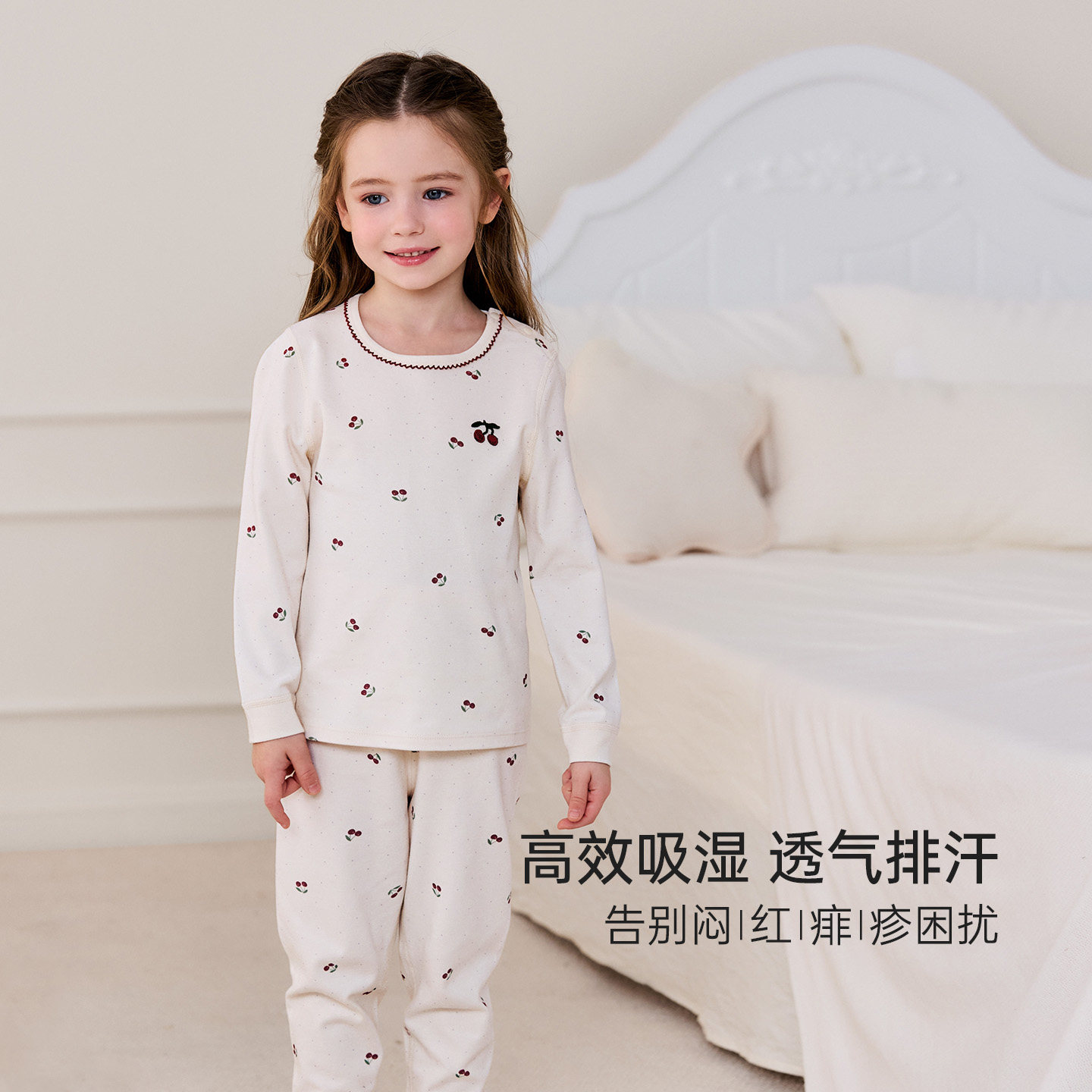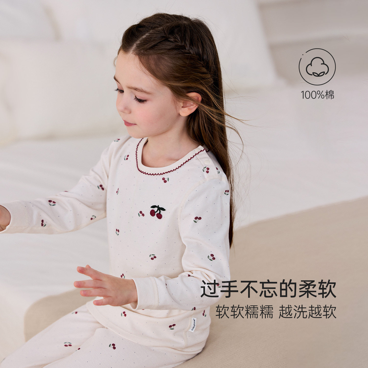 babylove【安心柔】女宝宝家居服春秋纯棉内衣套装睡衣樱桃甜梦