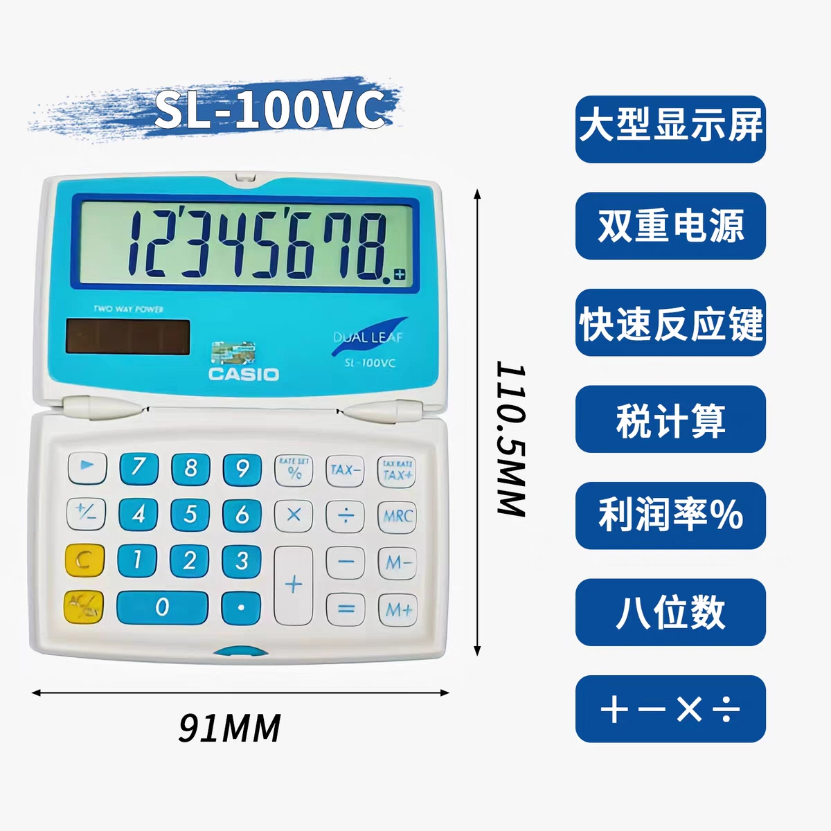 Casio卡西欧SL-100NC迷你可爱时尚计算机太阳能便携可折叠计算器