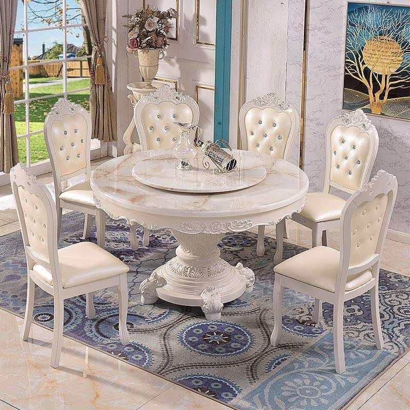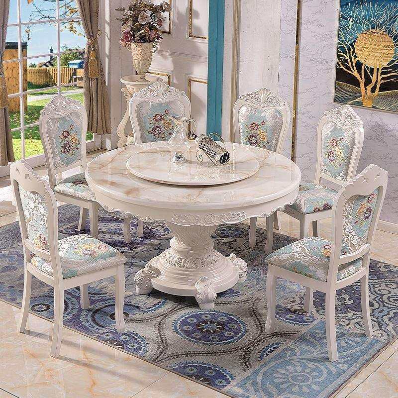 欧式餐桌椅组合大理石圆桌家用圆形饭桌餐桌小户型实木桌子家具