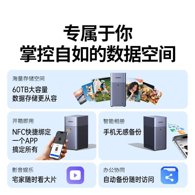 【重磅新品】绿联私有云DH2300双盘位NAS网络存储个人云AI家庭硬盘服务器NFC一碰连接相册备份手机平板扩容