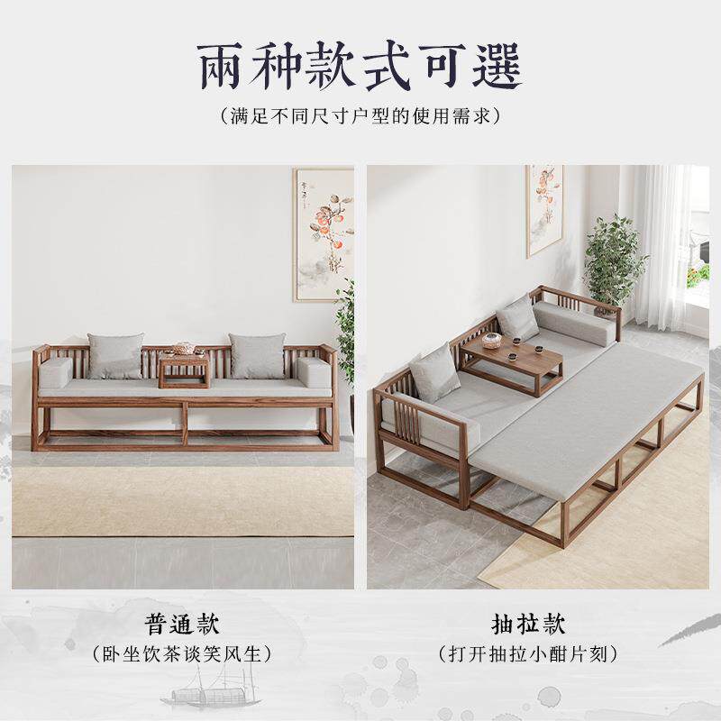 新中式罗汉床推拉全实木可伸缩禅意茶桌椅组合书房睡卧塌客厅家具