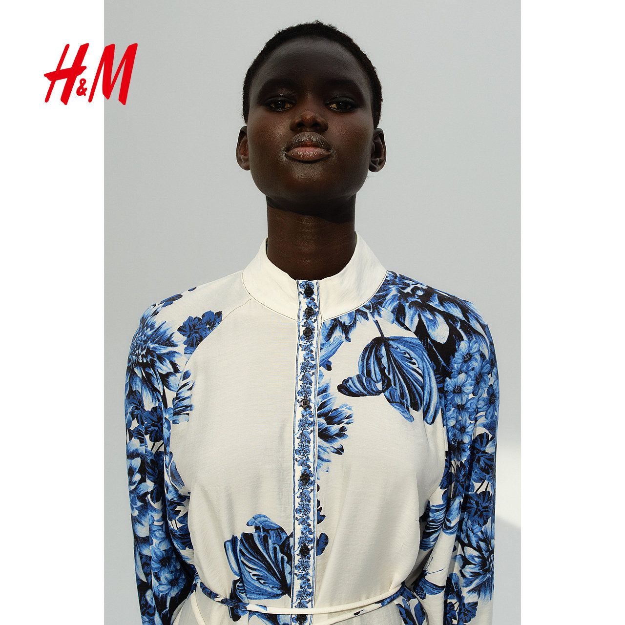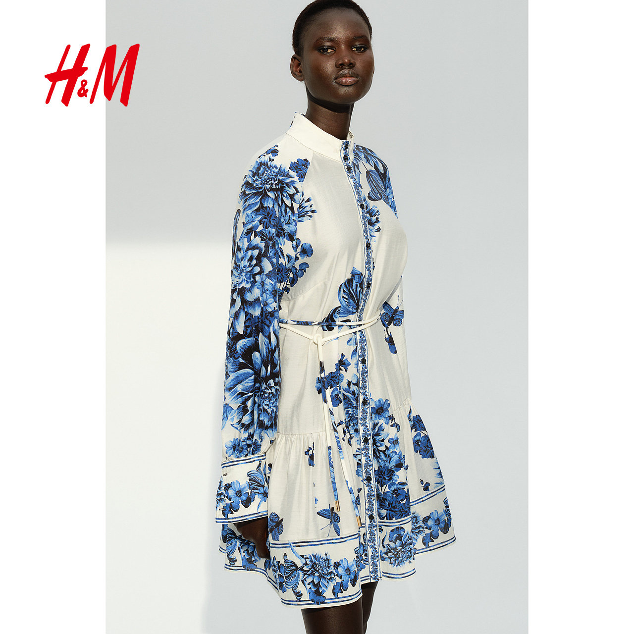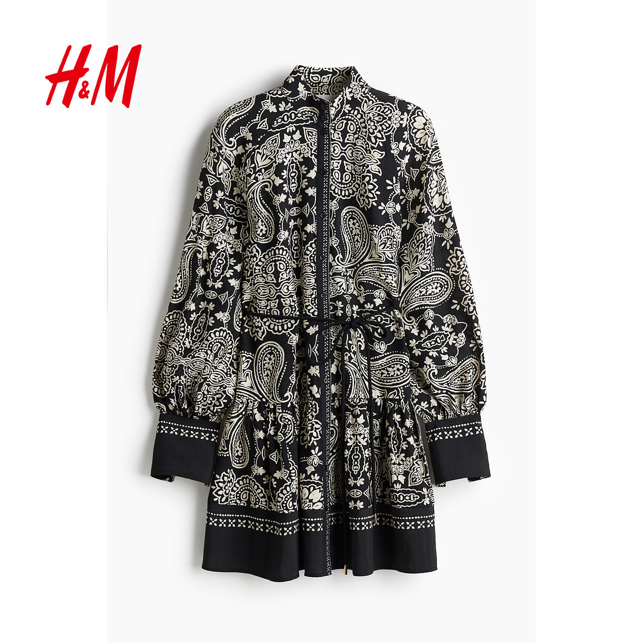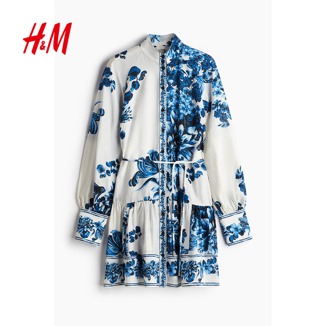 HM女装连衣裙春季法式腰部系带花卉连衣裙长袖裙1265601