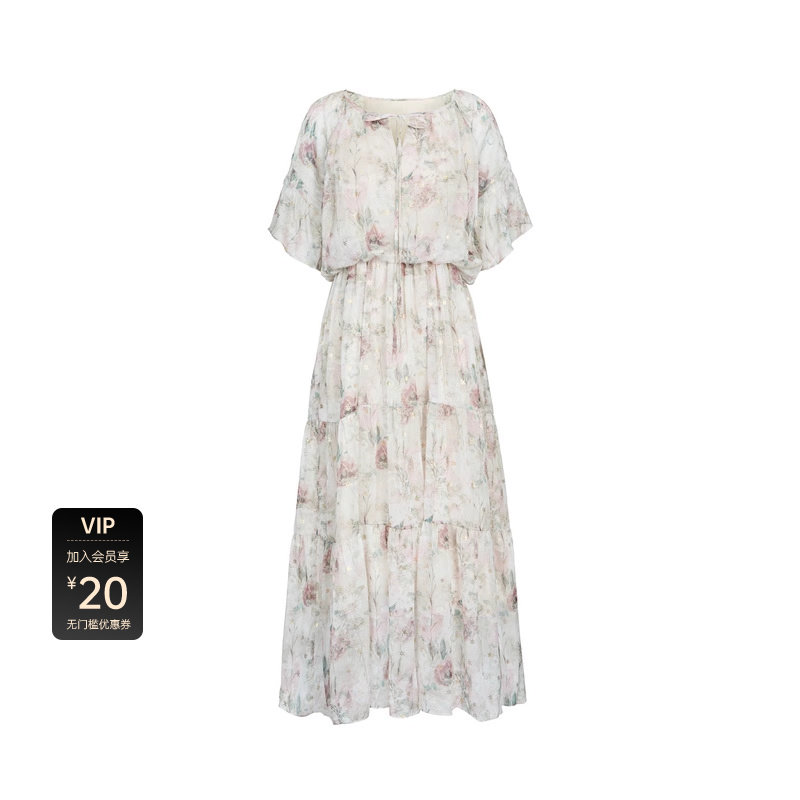 sdeer圣迪奥女装清新系带圆领露肩印花连衣裙S232Z12AR