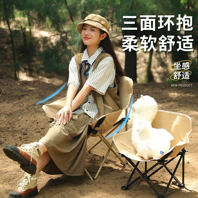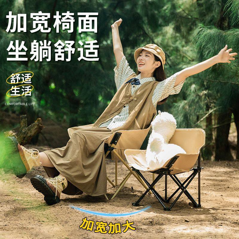 户外折叠椅月亮椅露营椅子便携式躺椅钓鱼凳沙滩椅野餐小凳子桌椅