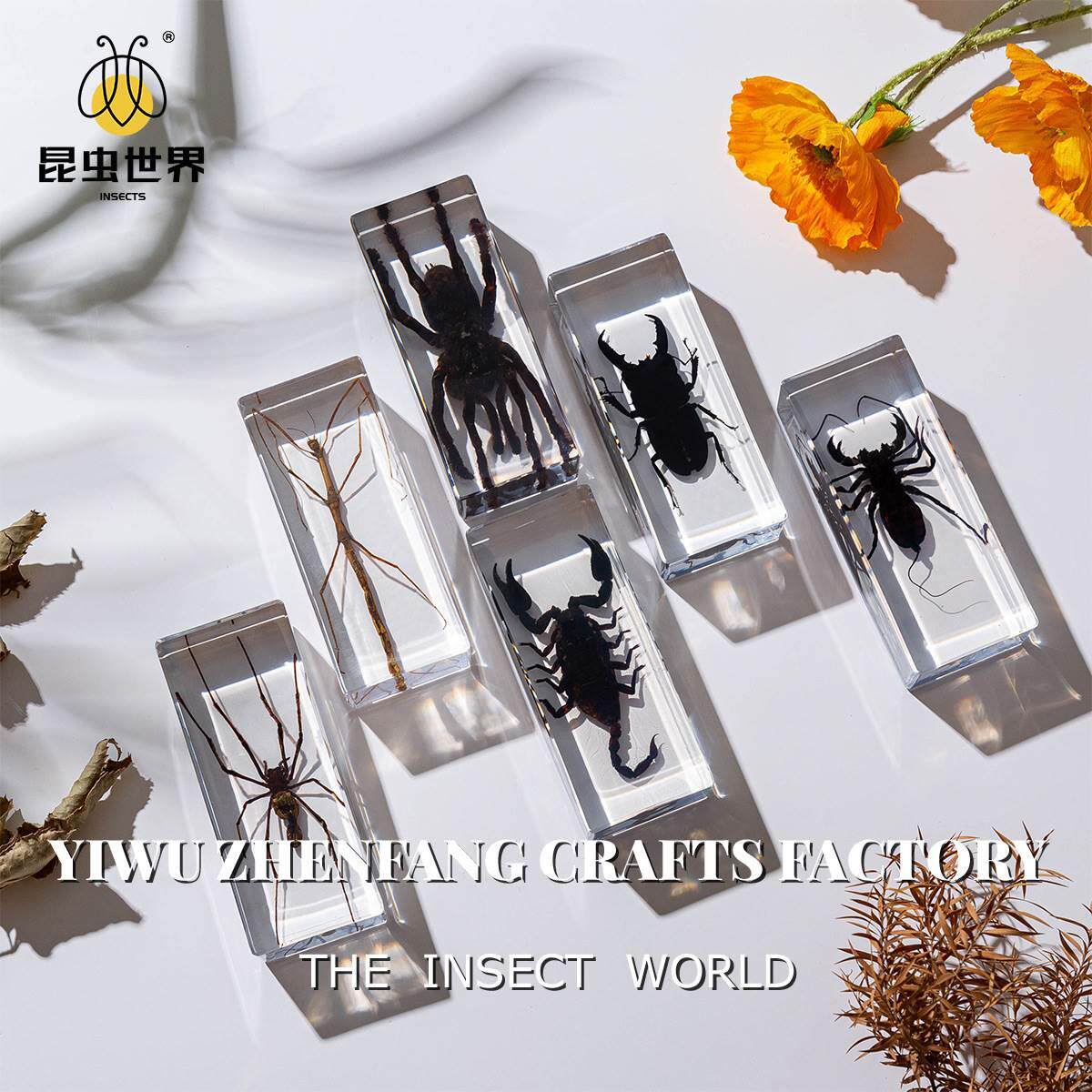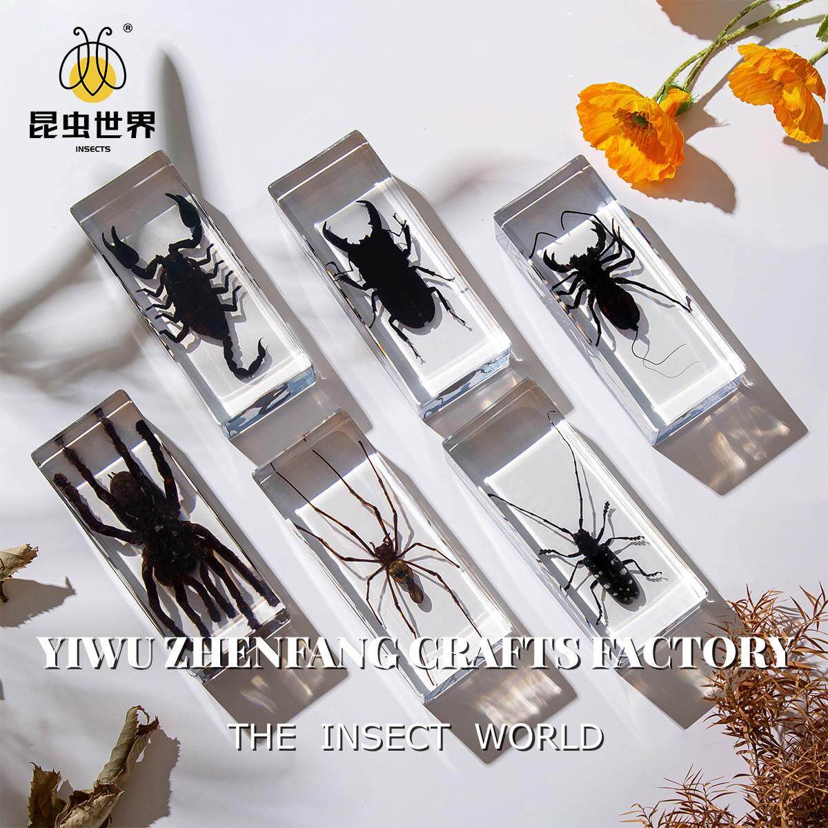 爆款螳螂标本真实昆虫标本摆件把玩书镇纸镇尺寸树脂琥珀亚克力款