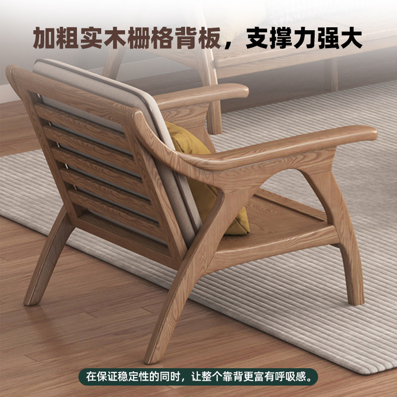实木沙发组合新中式家用客厅小户型直排三人位简易出租房单人沙发