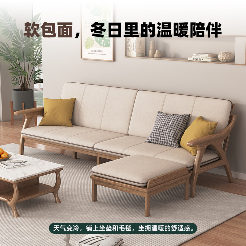 北欧全白蜡木实木客厅冬夏两用沙发小户型现代简约三人位布艺沙发