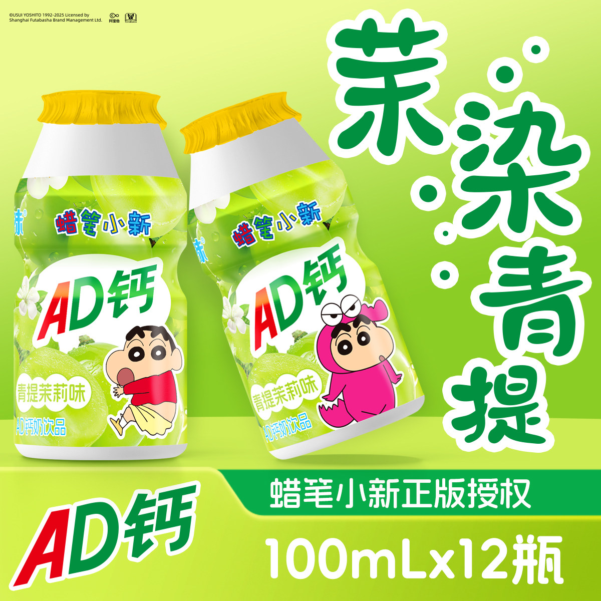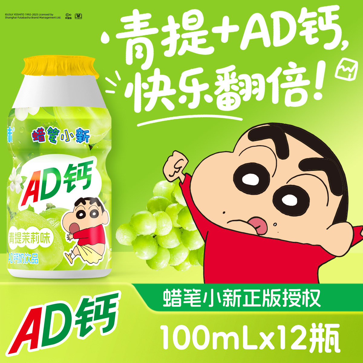 蜡笔小新ad钙奶联名款饮料儿童早餐茉莉青提白桃味饮品100ml*12瓶
