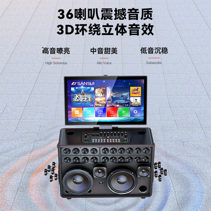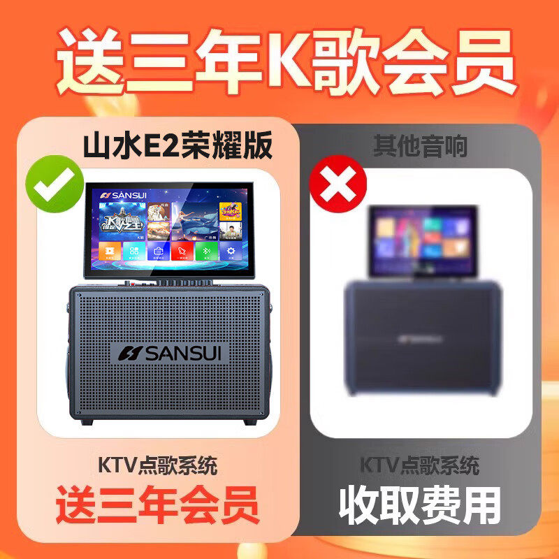 山水E2户外广场舞音箱家庭ktv音响套装k歌一体机家用内置声卡新品