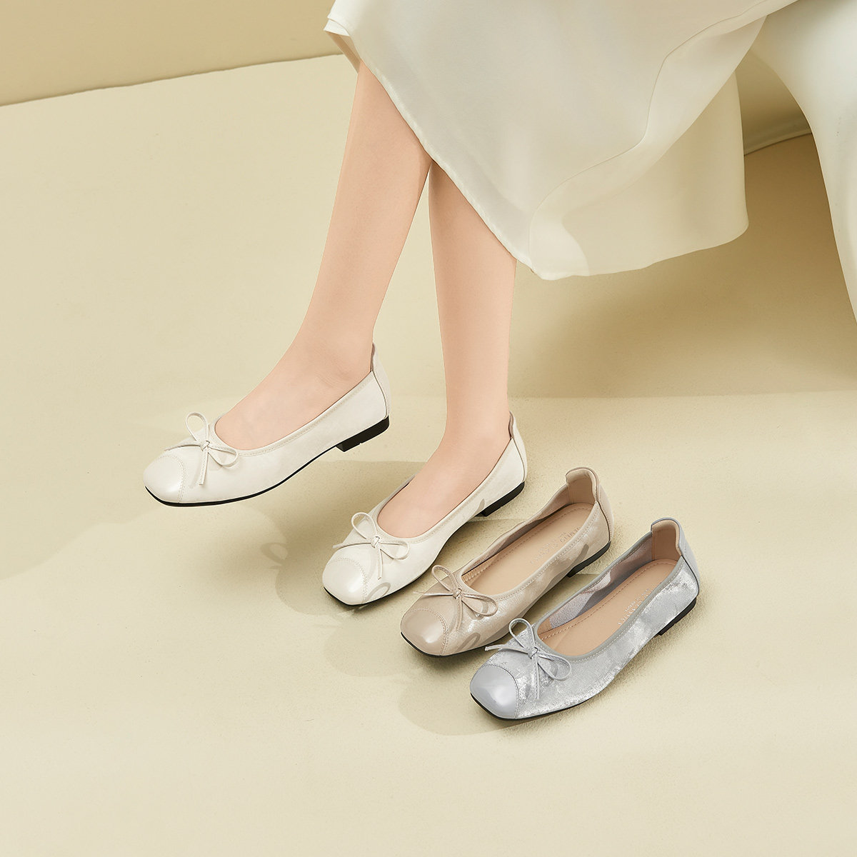 戈美其法式蝴蝶结浅口单鞋女2025夏秋季温柔晚晚风平底百搭蛋卷鞋
