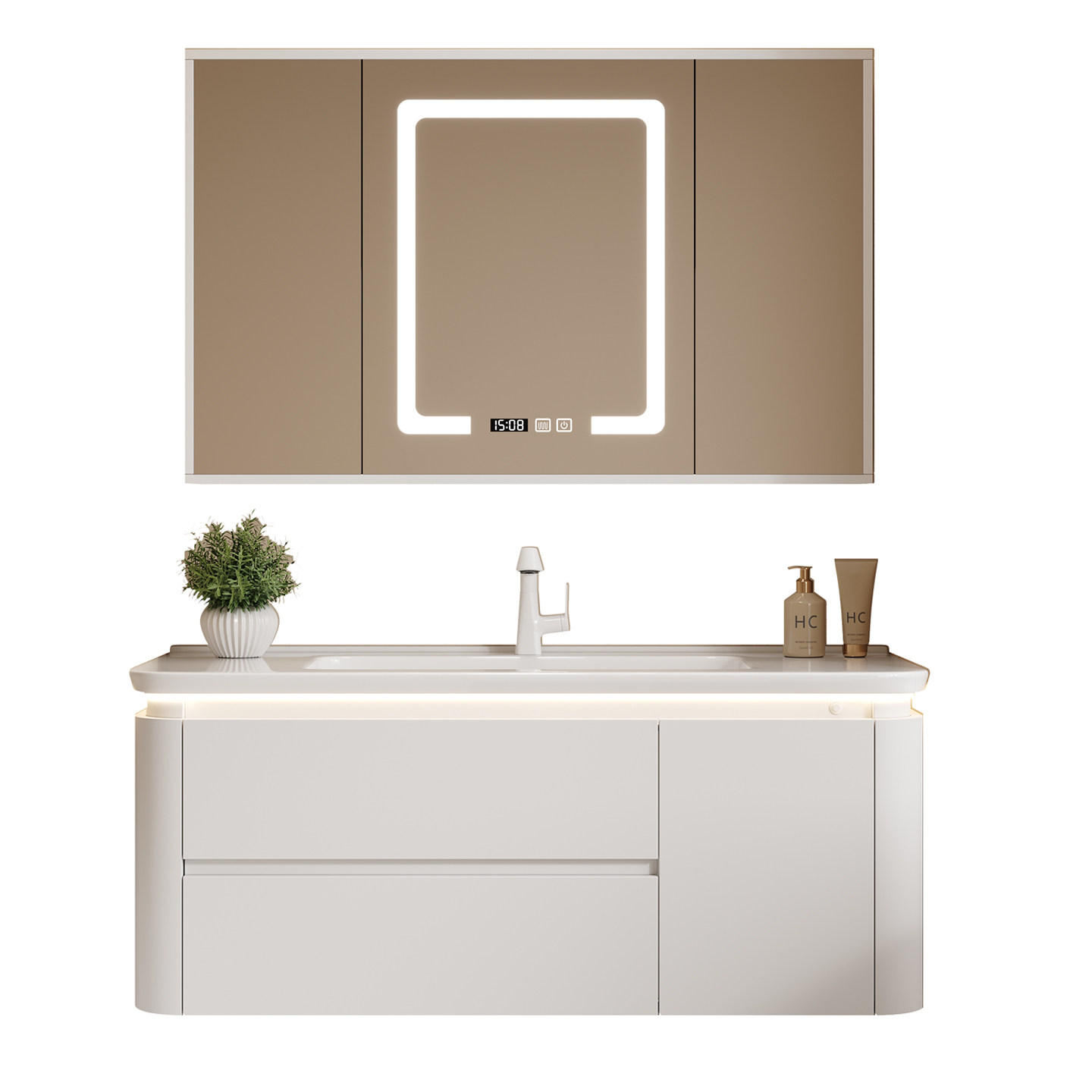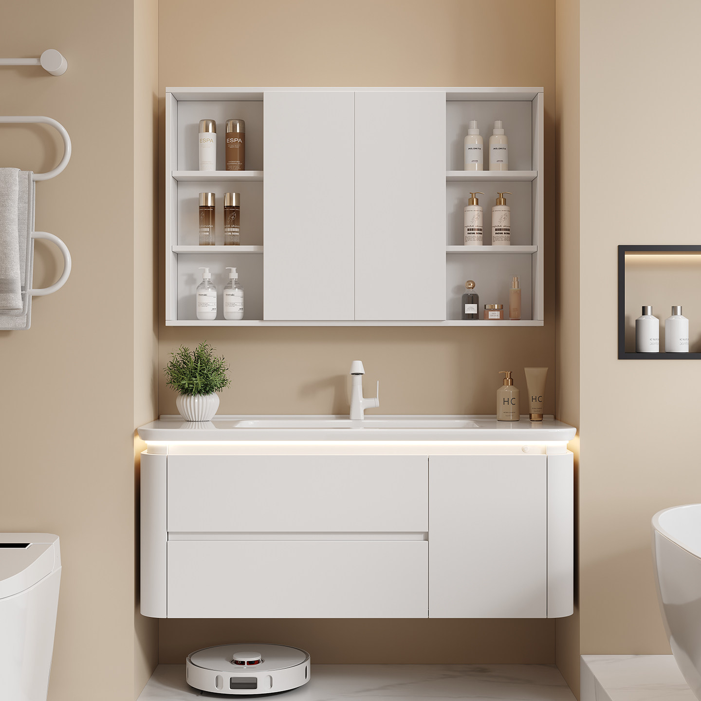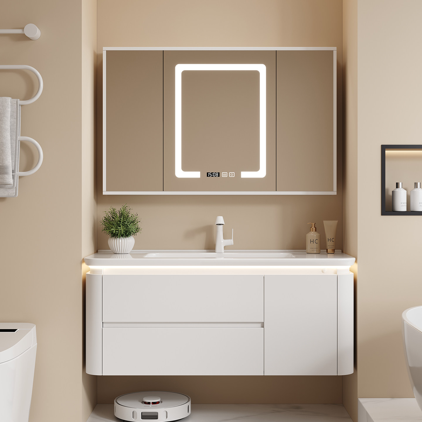 风水镜隐藏式折叠镜柜奶油风浴室卫生间洗脸盆智能内藏镜柜洗漱台
