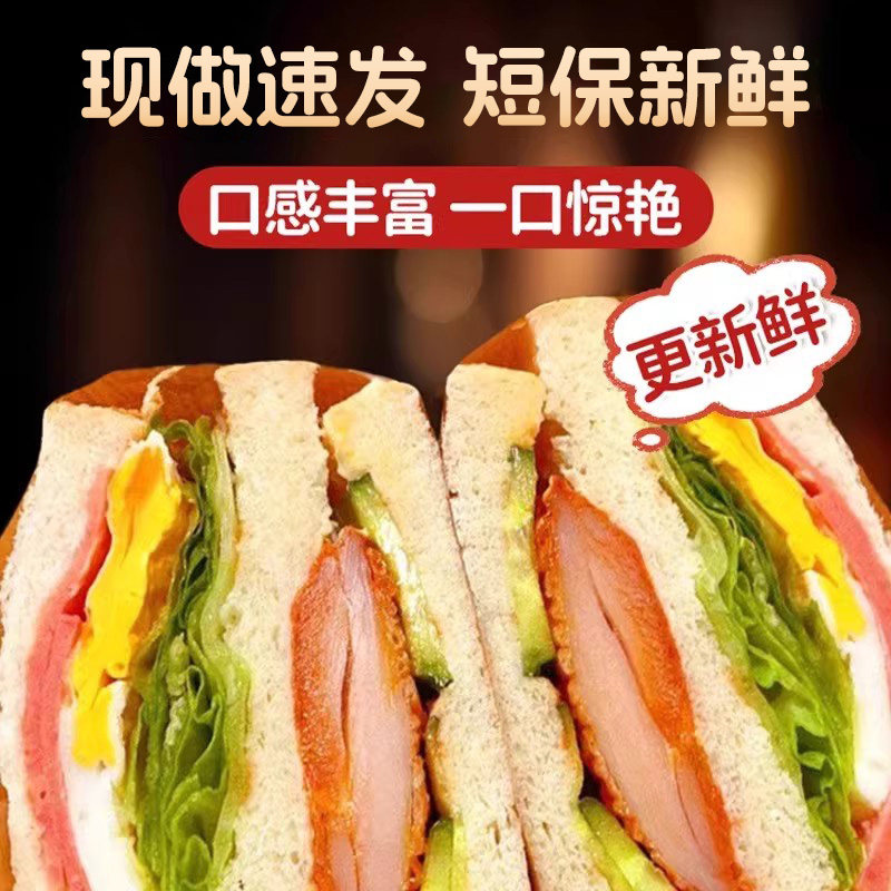 三明治早餐面包鸡肉培根火腿芝士夹心吐司懒人早餐速食品充饥零食