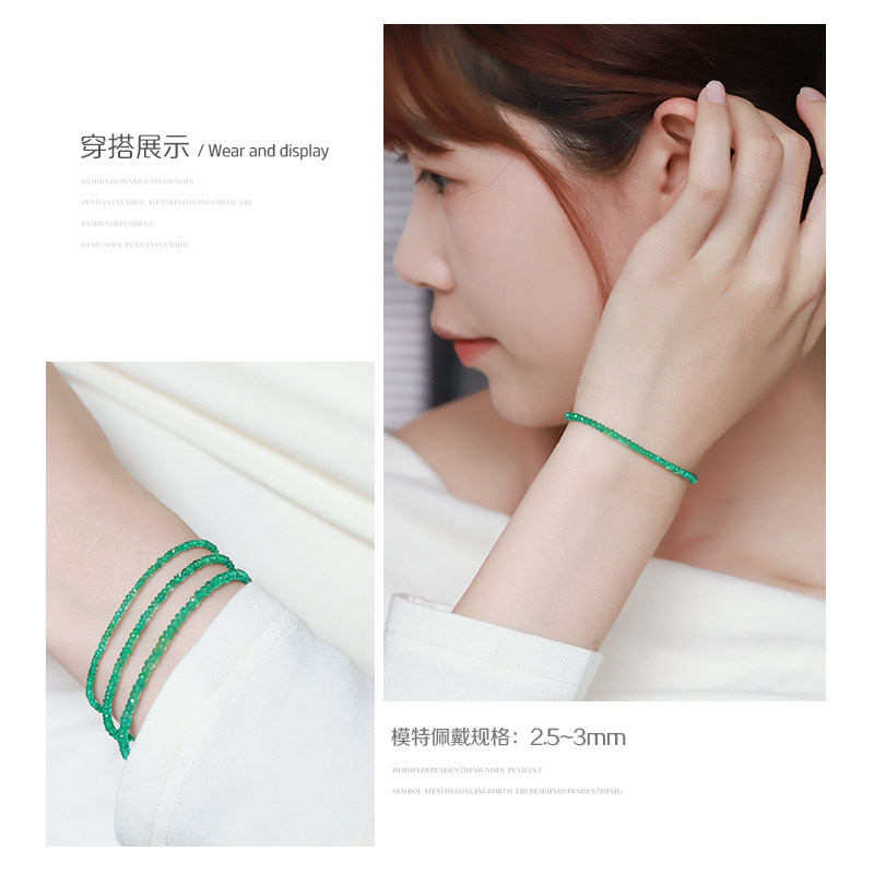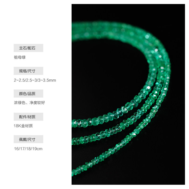 若华珠宝纯翠=赞比亚刻面祖母绿手链女18K金串珠手饰彩宝手串礼物