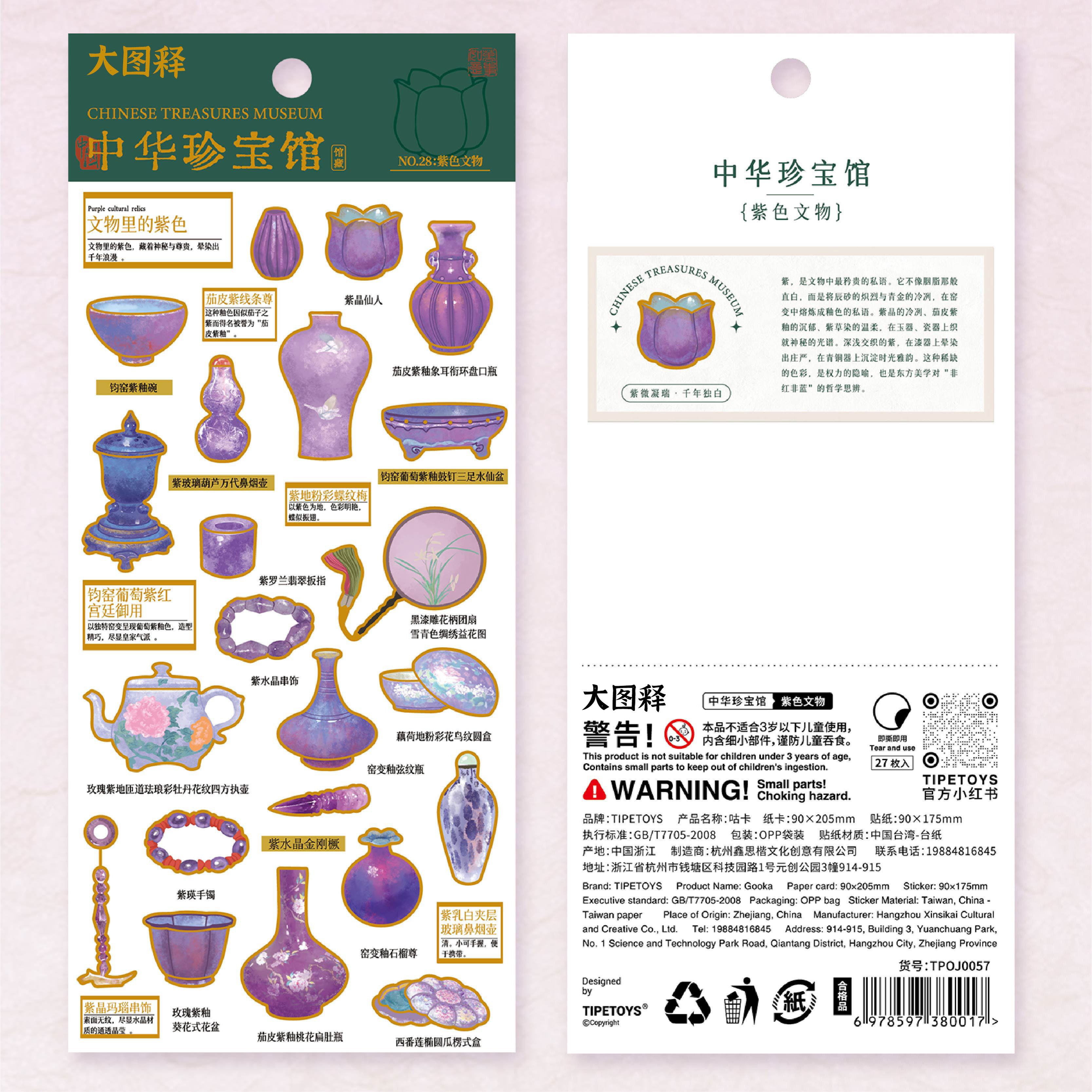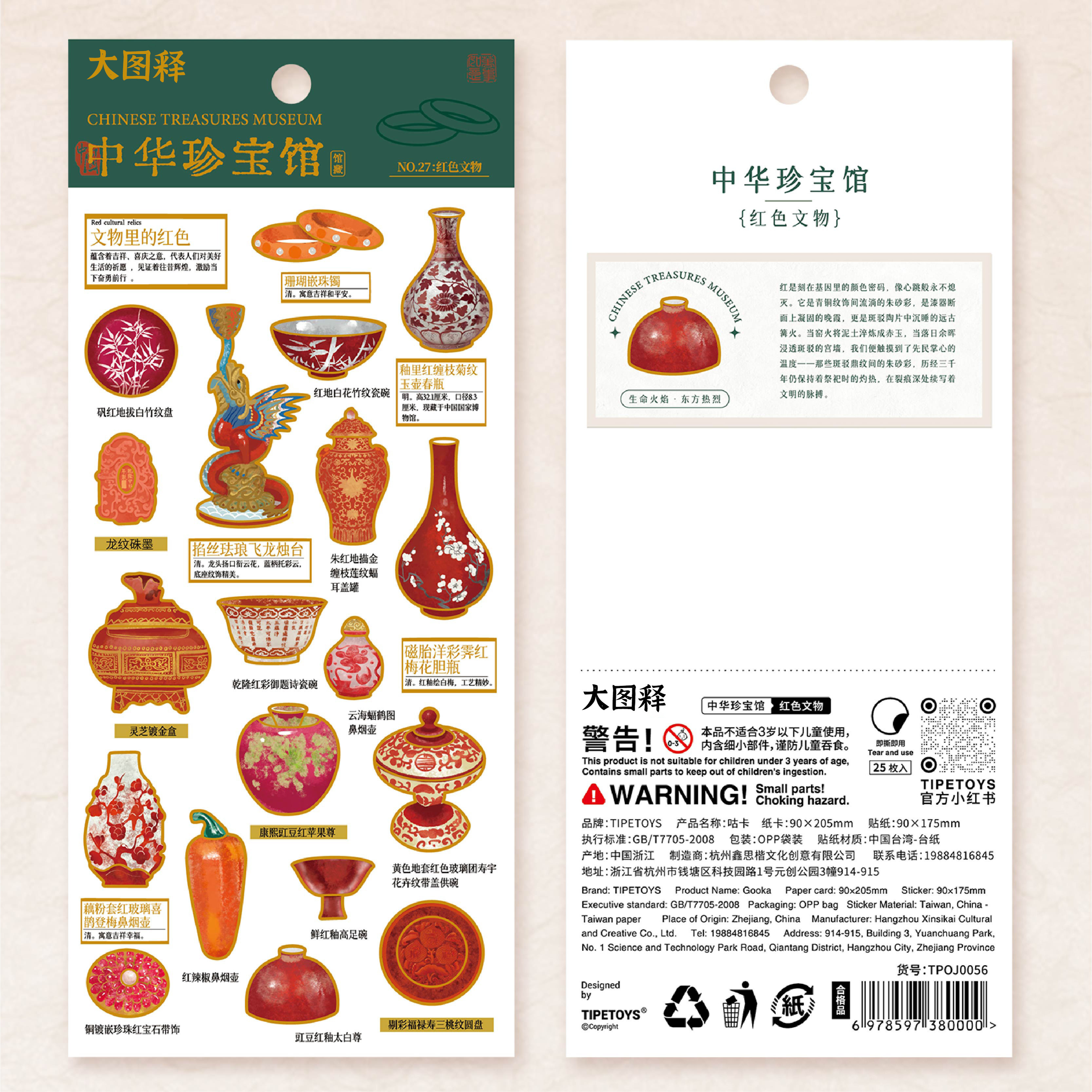 【大图释官方授权】中华珍宝馆红字蓝色系古物国潮风瑰宝文创系列瓷器玉瓶手链烛台碗diy手账装饰标签贴画纸