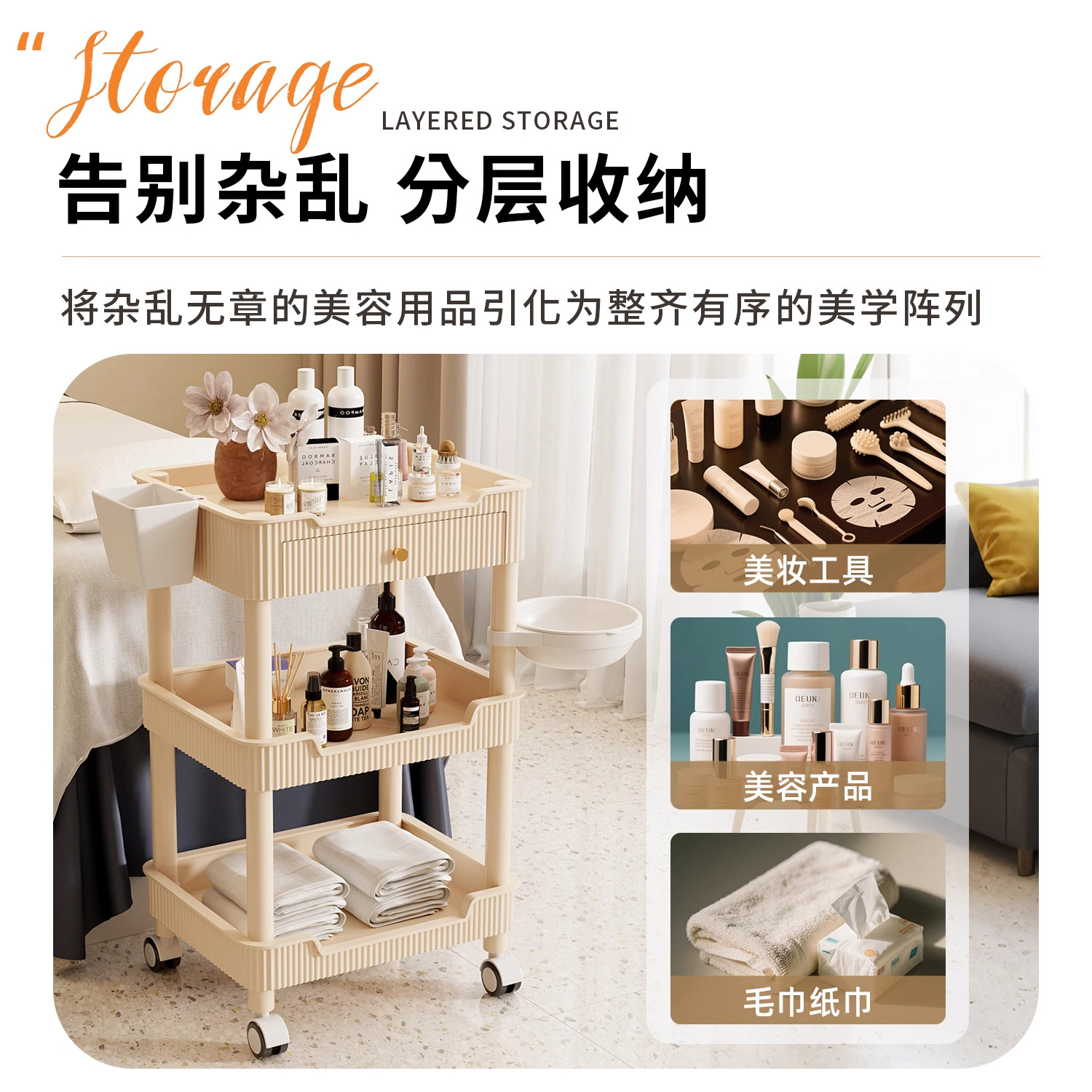 美容推车美容院专用小推车高级医用置物架仪器工具车移动浴室阳台