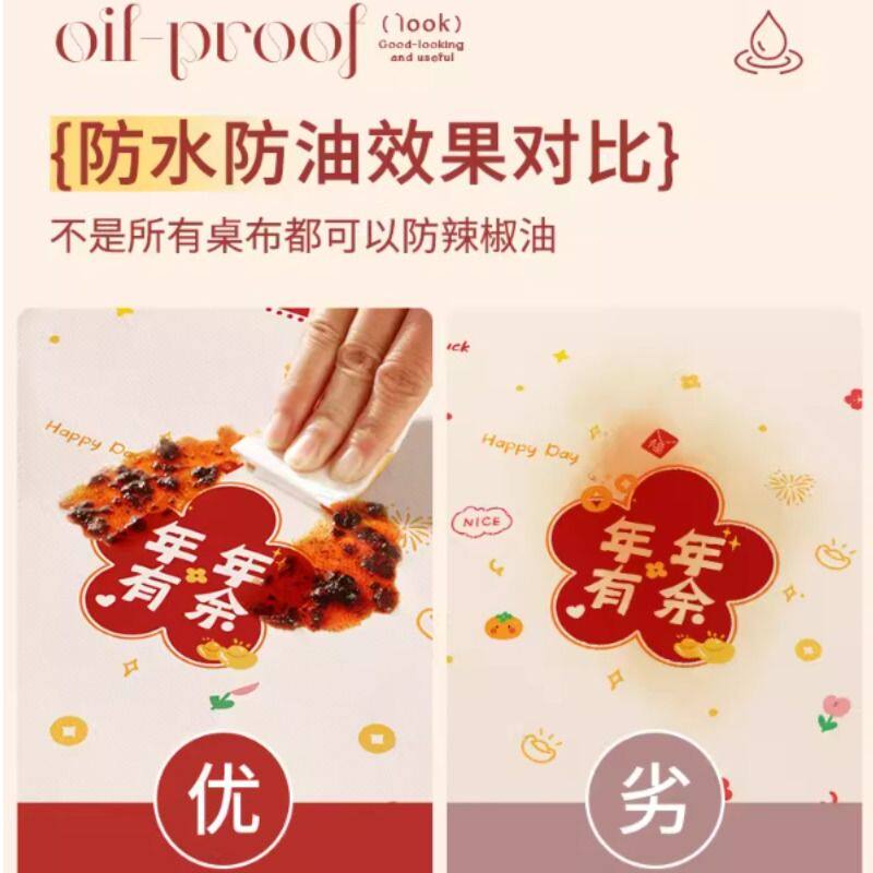 新款桌布防水防油免洗桌垫过年装饰布置餐桌布喜庆氛围感茶几台布
