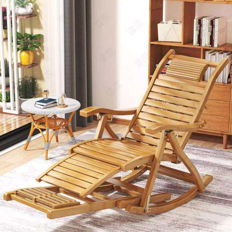 折叠竹摇摇椅躺椅午休大人阳台家用午睡懒人休闲凉椅老人实木逍遥