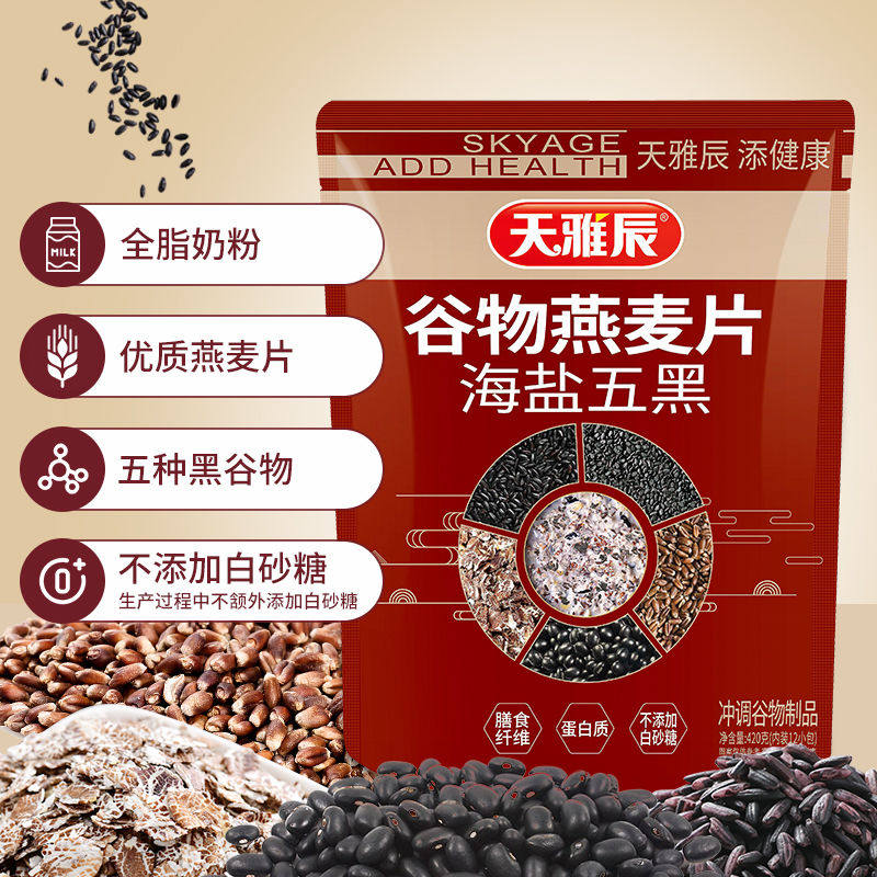 天雅辰五谷粗粮海盐高钙麦片420g袋装海盐五黑营养代餐早餐燕麦片