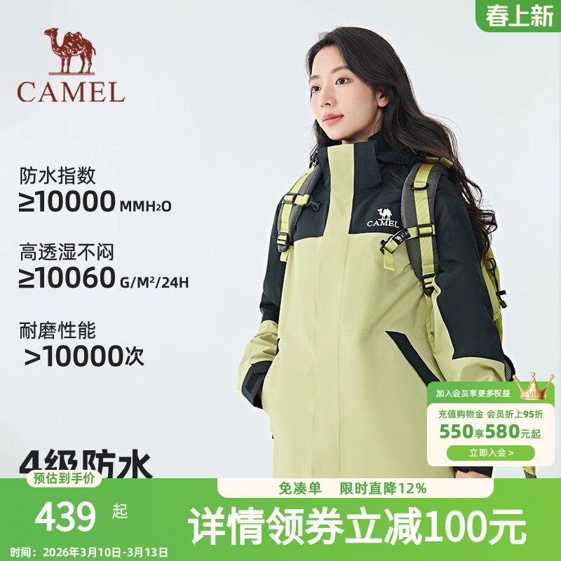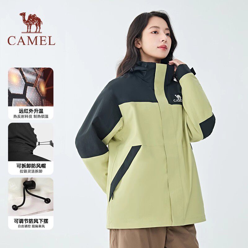 骆驼三合一冲锋衣女款2026新款防风防水户外硬壳加绒登山冲锋服男