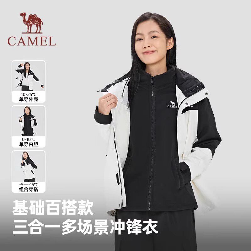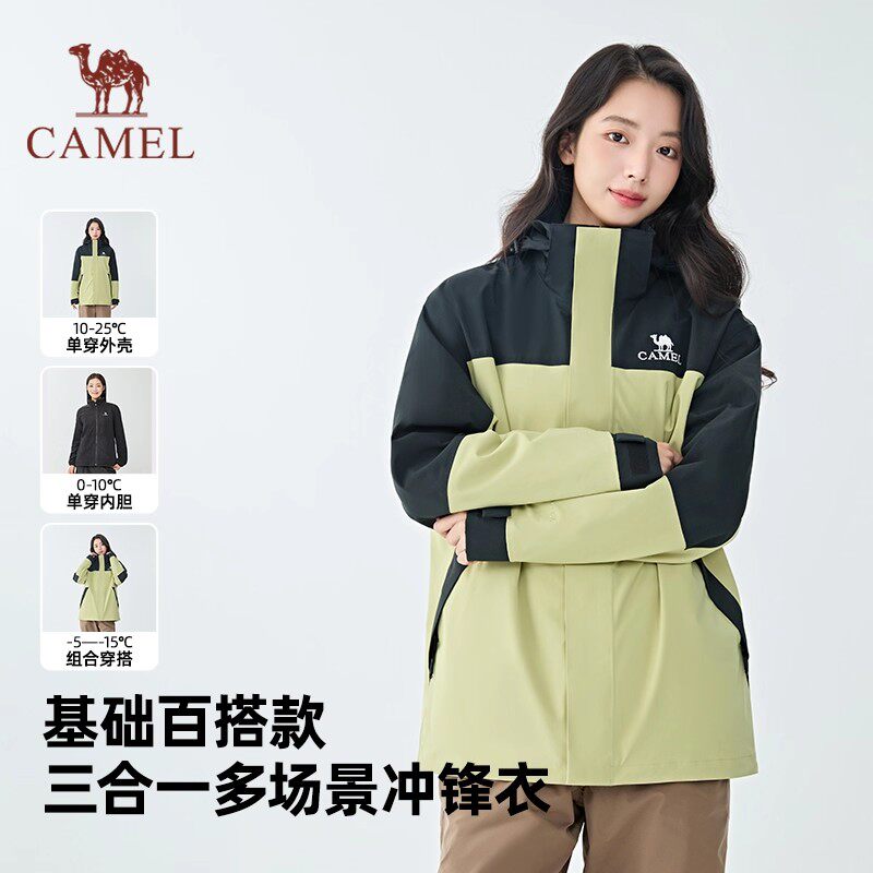 骆驼冲锋衣三合一可拆卸两件套男女情侣款外套户外防水旅游登山服