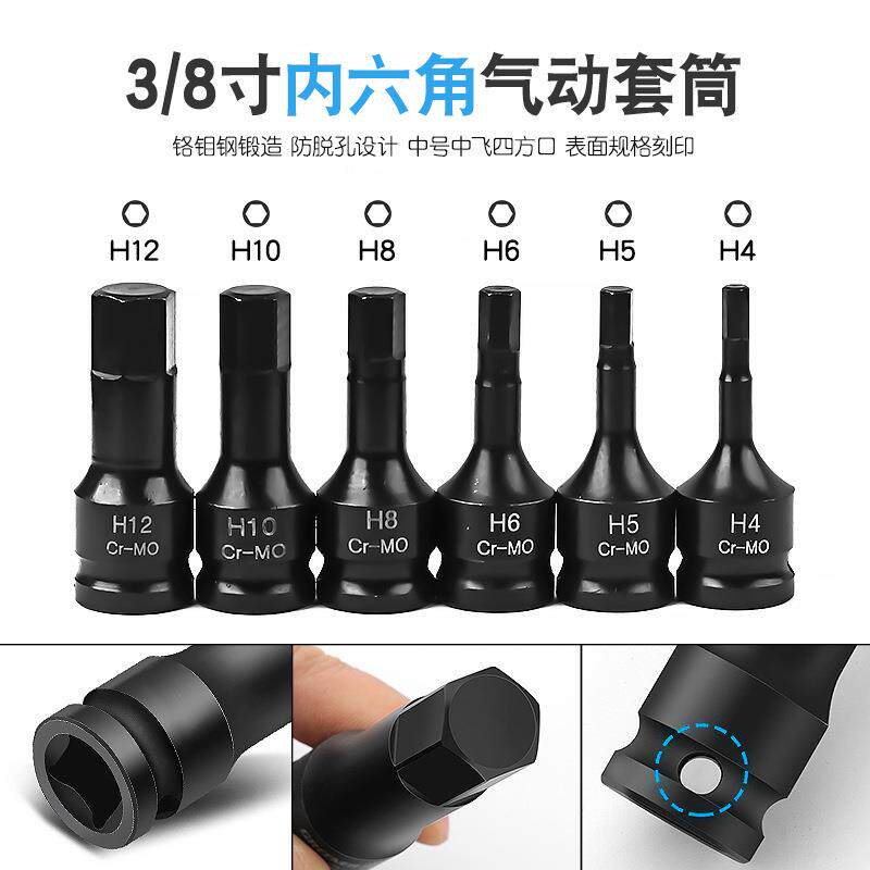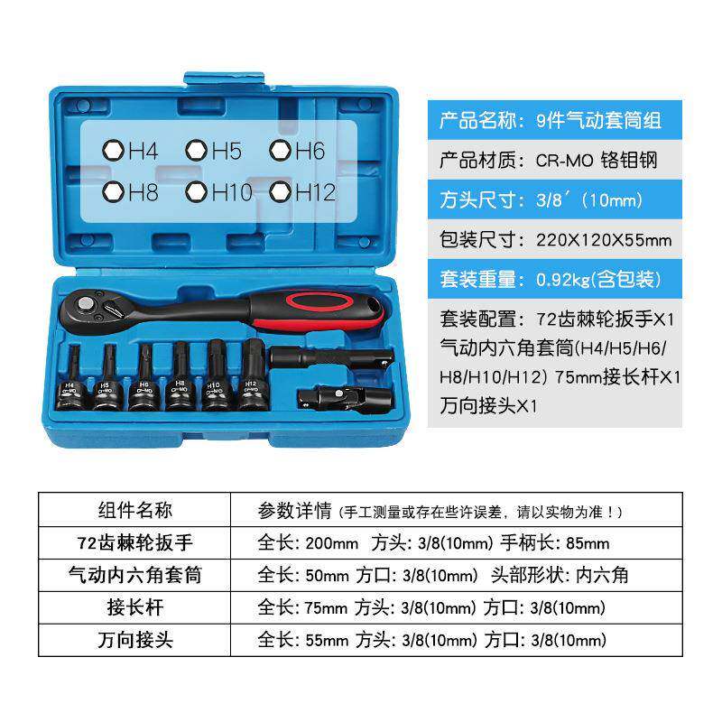 3/8气动内六角套筒72齿正反快速棘轮扳手接长杆万向节批头工具组