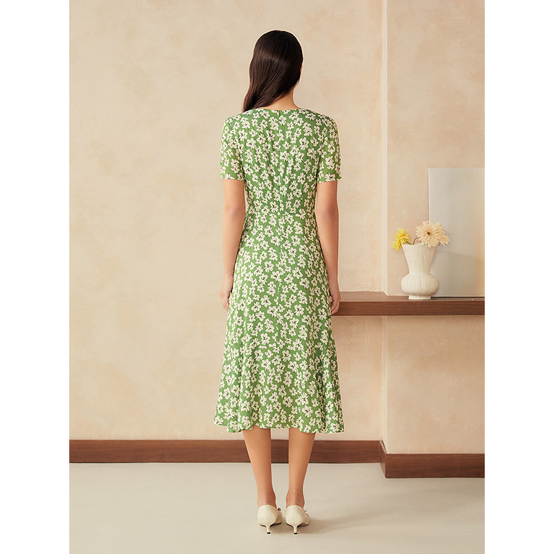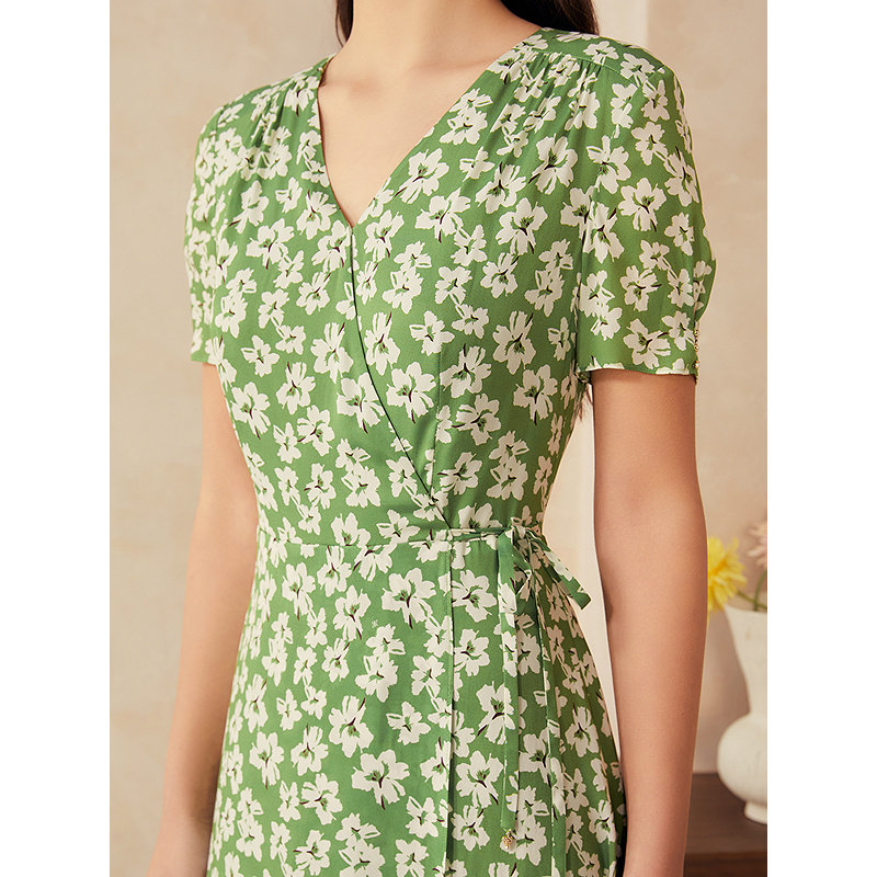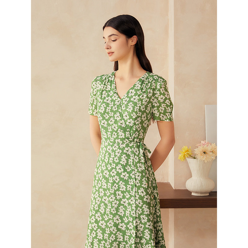 【周末花园】YINER音儿专选2025夏新款真丝百合印花茶歇裙连衣裙