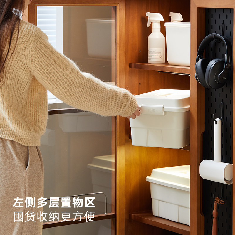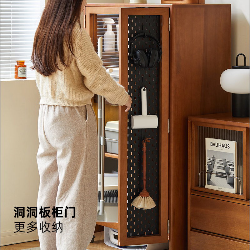 北欧实木家政柜复古小户型可移动阳台扫地机器人收纳柜客厅储物柜